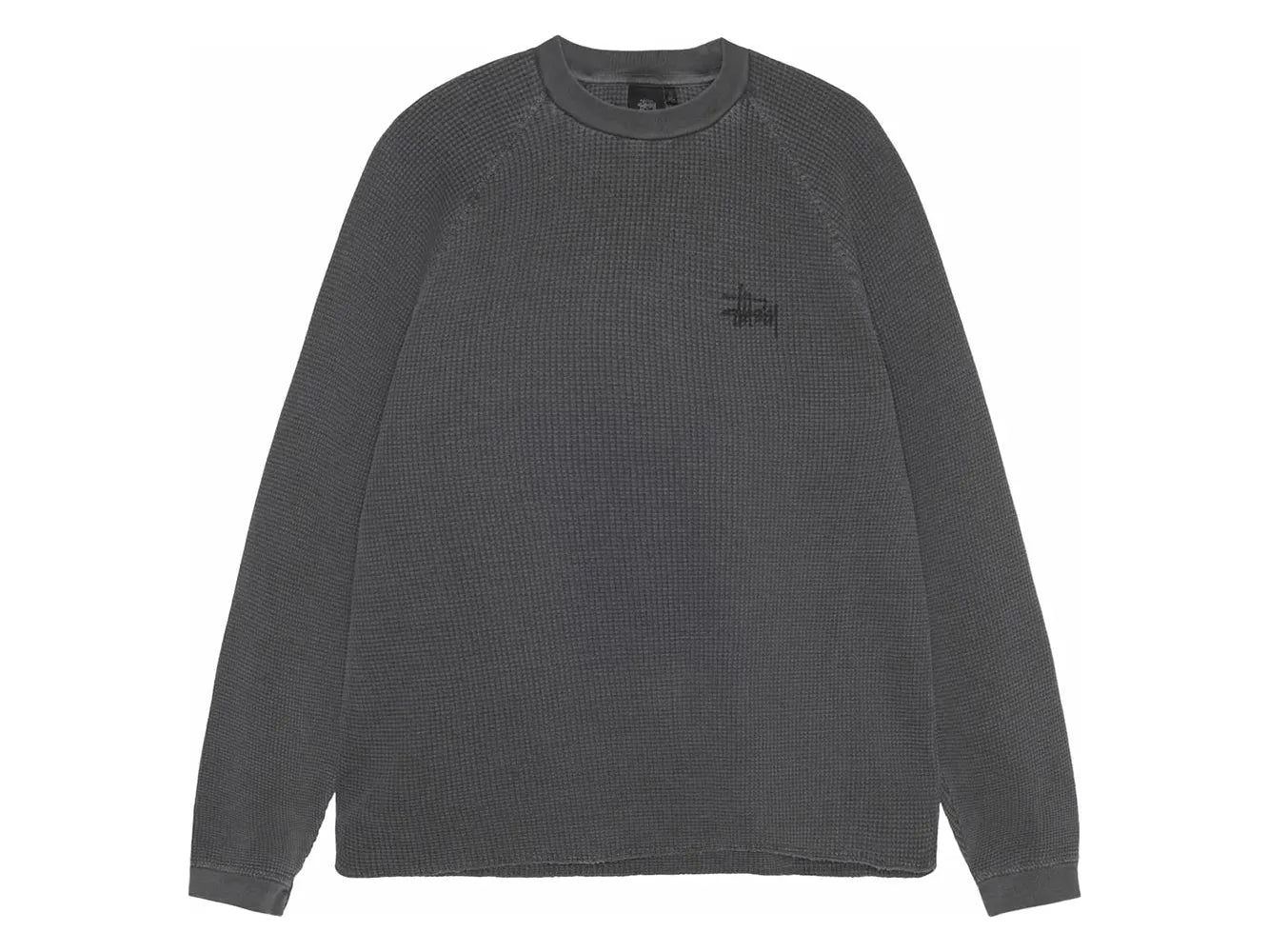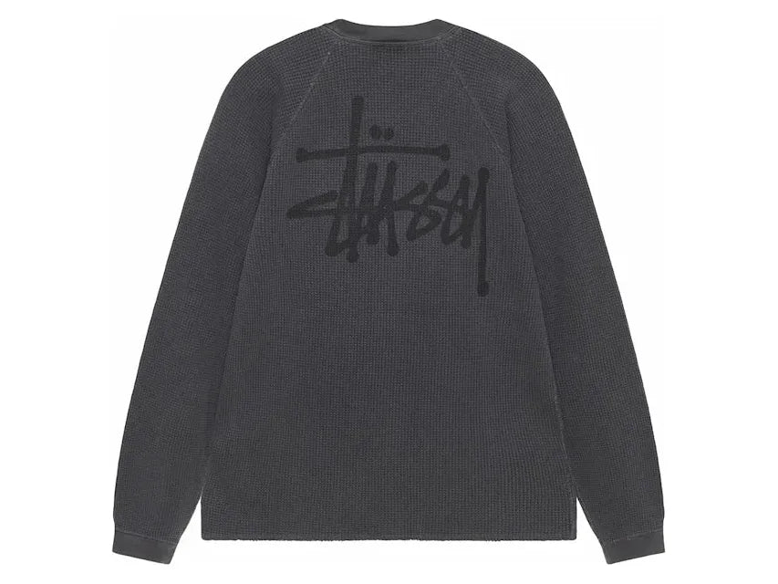STUSSY RAGLAN THERMAL LS CREW WASHED BLACK
