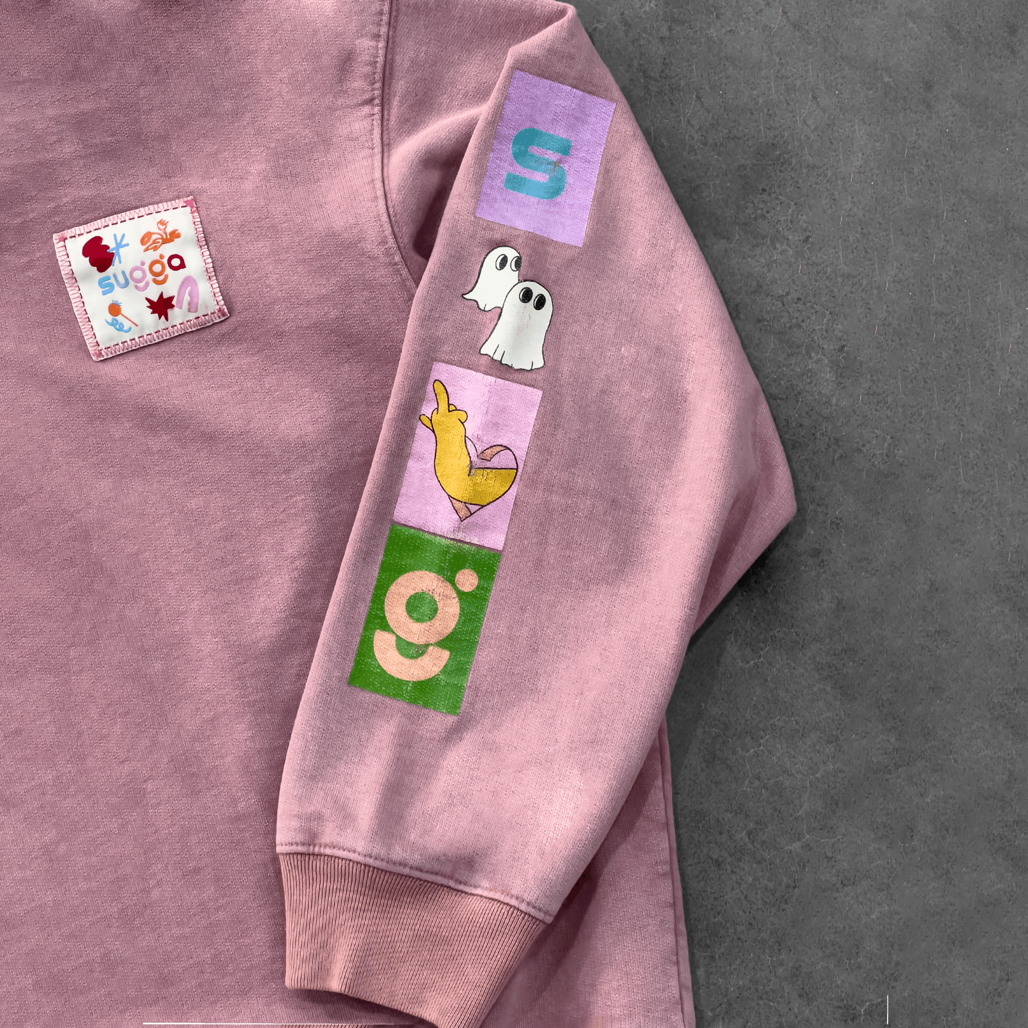 Oversized fit. Ribbed collar, cuffs and bottom. Printed sleeve. Sugga matrix printed inside hoodie. Acid Washed. Cracked Print Material : 100% Cotton Colour : Salmon