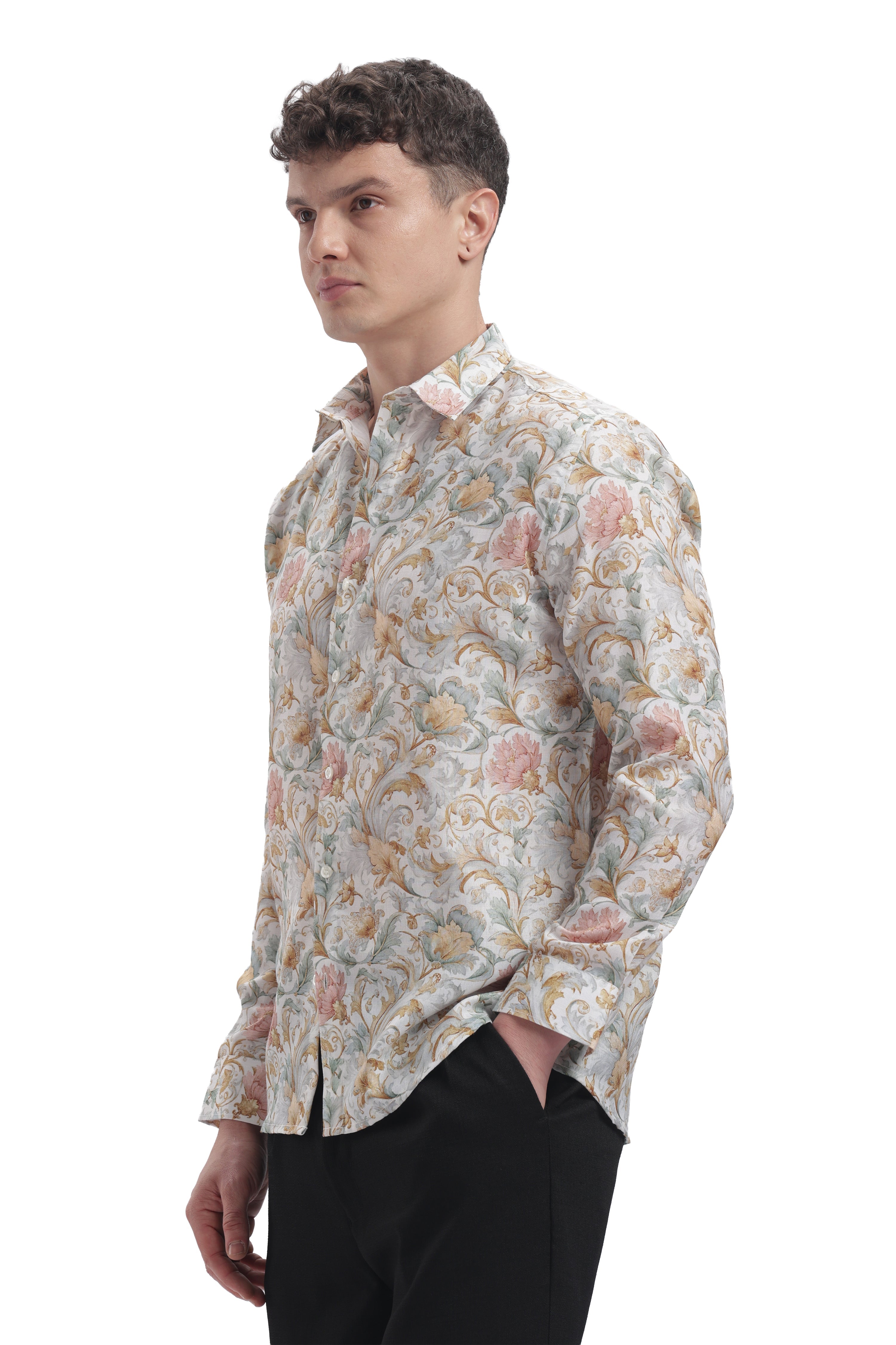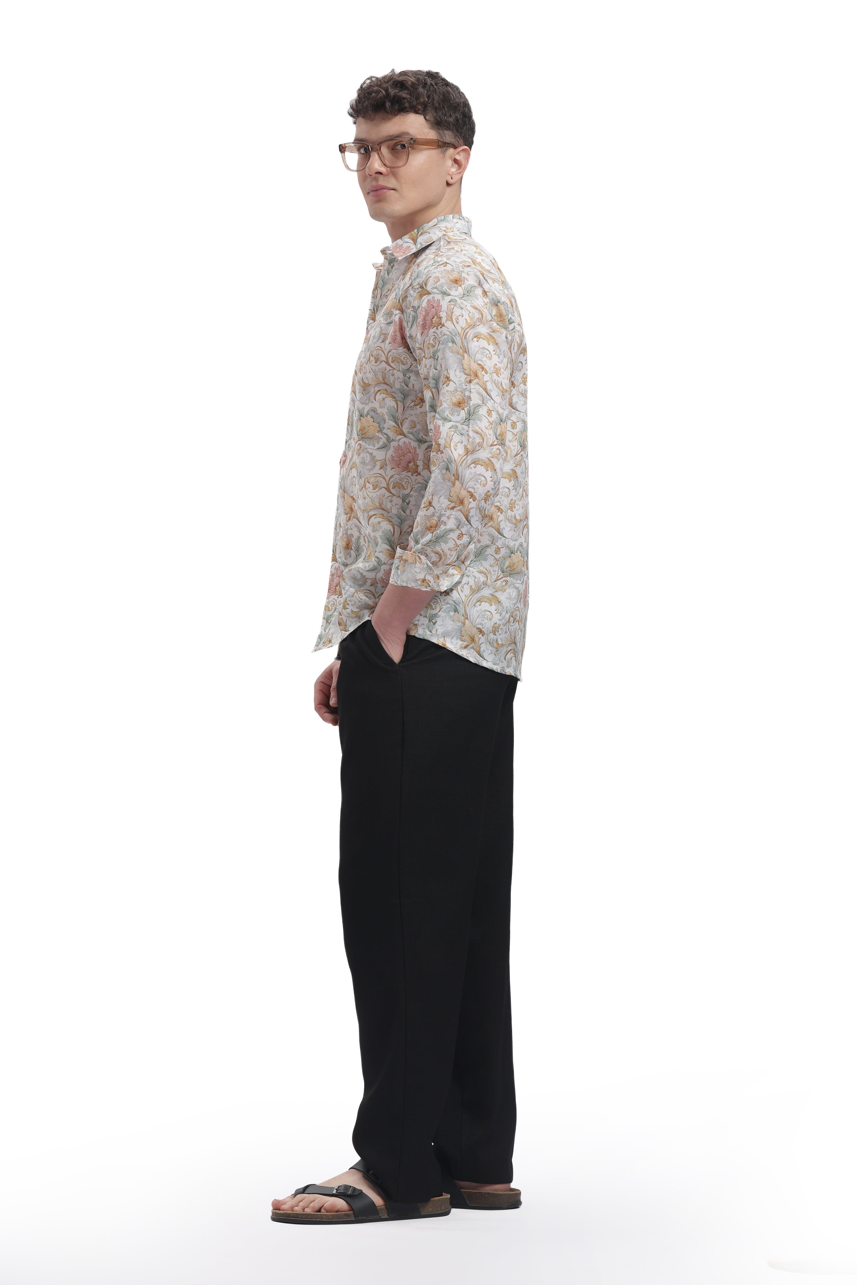 Unleash your bold side with the IMHERE Exclusive Printed Shirt, a limited-edition masterpiece designed for effortless style. Crafted from premium linen, this shirt combines a luxurious feel with a unique, custom IMHERE print to create the perfect blend of comfort and fashion. The resort collar adds a touch of sophistication, making it ideal for casual outings or stylish evenings.