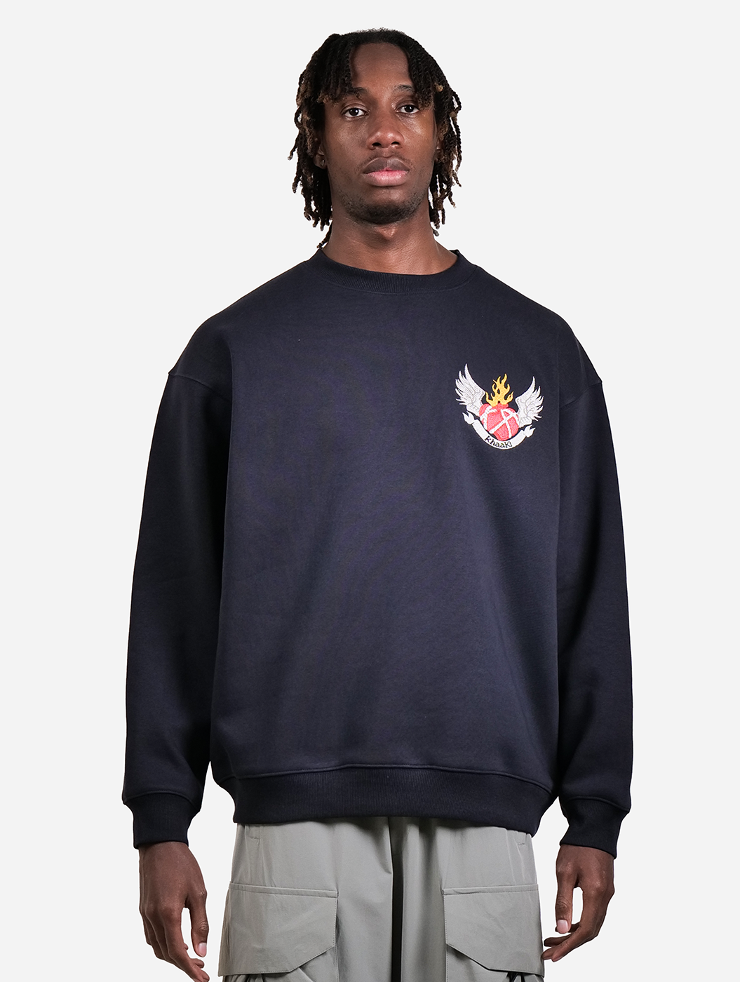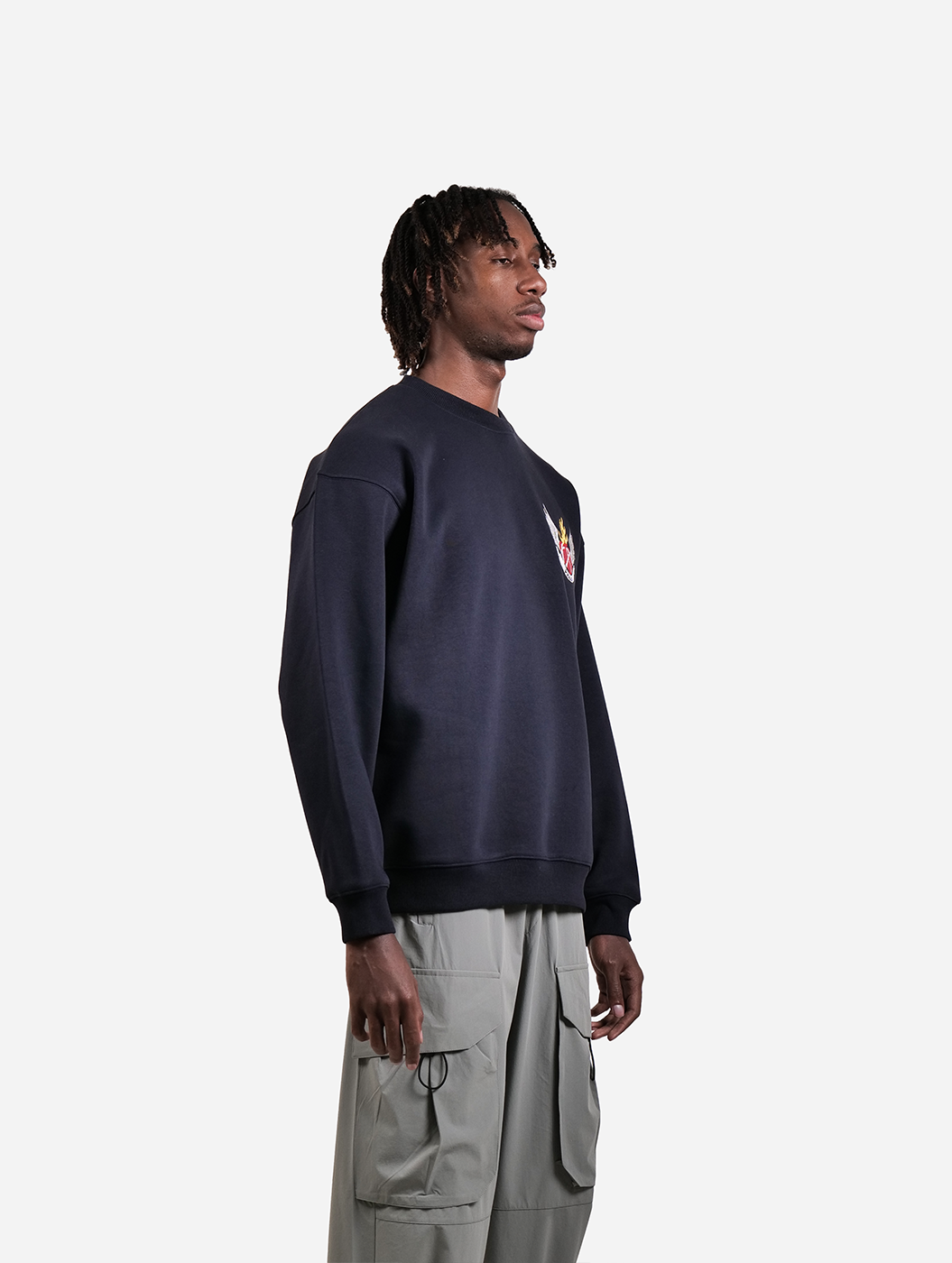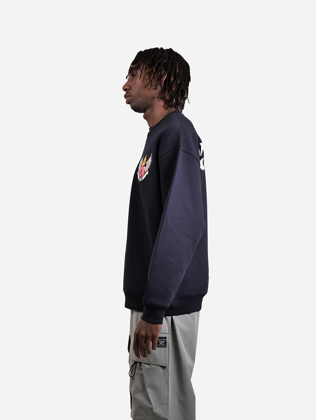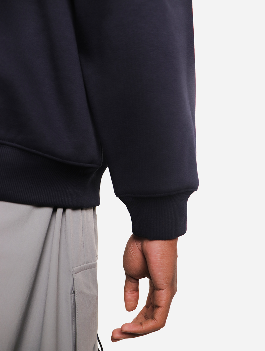 Supreme - Navy Blue Embroidered Drop Shoulder Men Oversized Sweatshirt