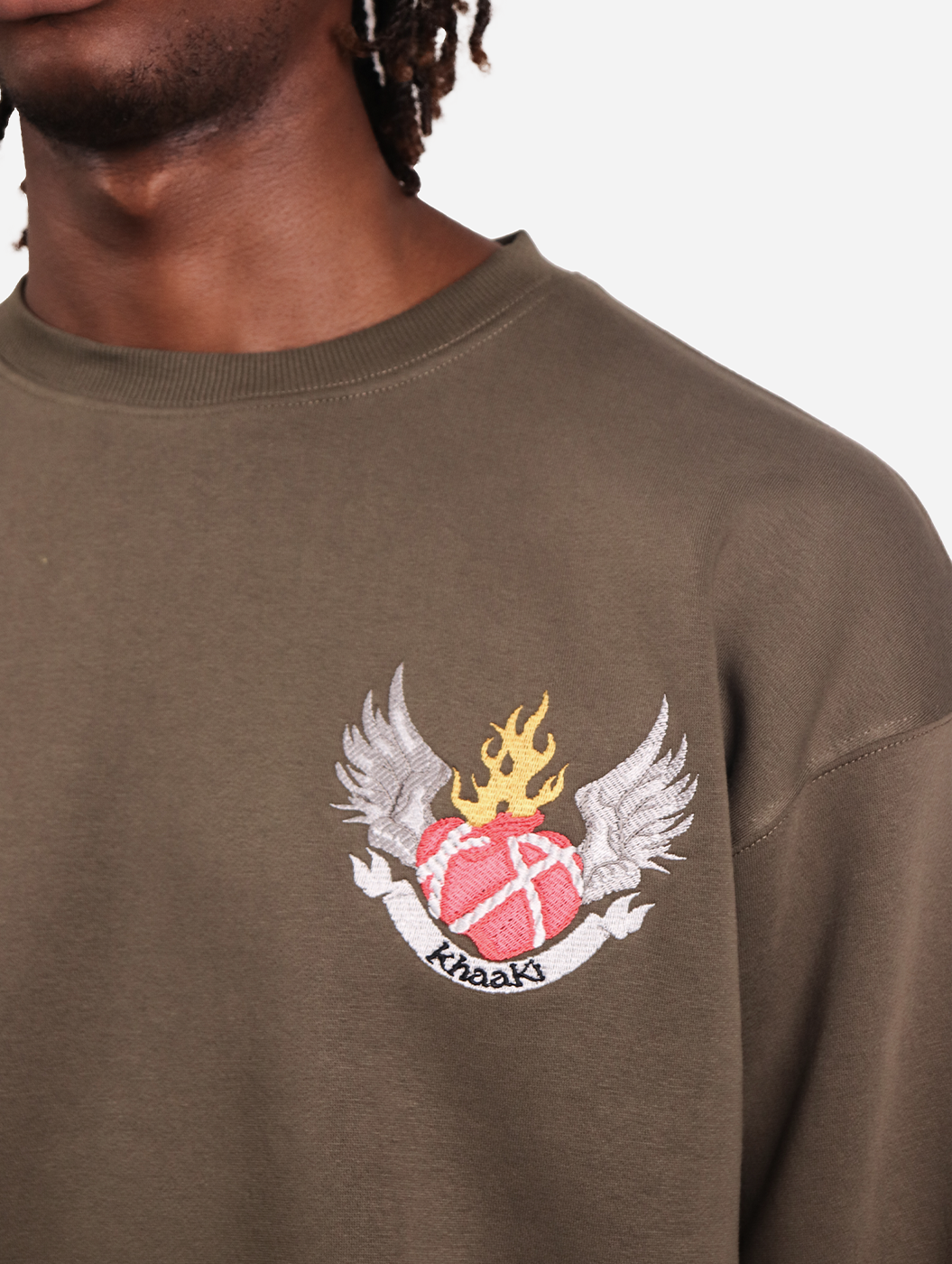 Supreme - Olive Embroidered Oversized Sweatshirt