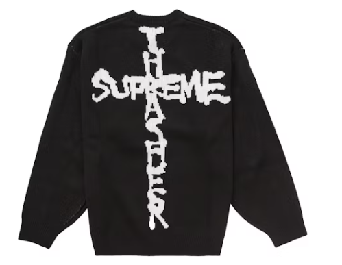 The Supreme Thrasher Sweater (FW24) in black is expertly crafted with high-quality materials to provide maximum warmth and comfort. Its iconic design and durable construction make it a must-have for any streetwear enthusiast. Show off your style with this limited edition Supreme piece.