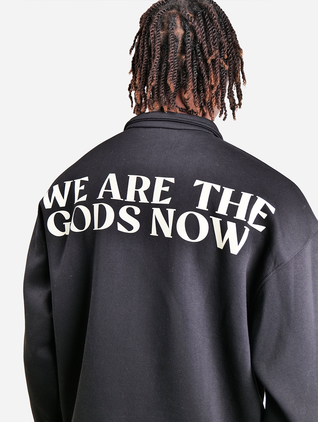 Introducing the Supreme V2 Zipper Sweatshirt, crafted from premium 400 GSM cotton fleece for ultimate warmth and durability. Featuring the powerful statement "We Are the Gods Now," this minimalistic design combines boldness with versatility.