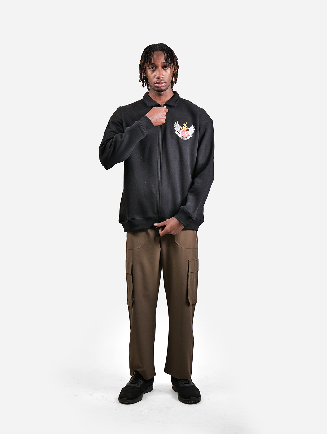 Supreme V2 - Black Drop Shoulder Men Oversized Zipper