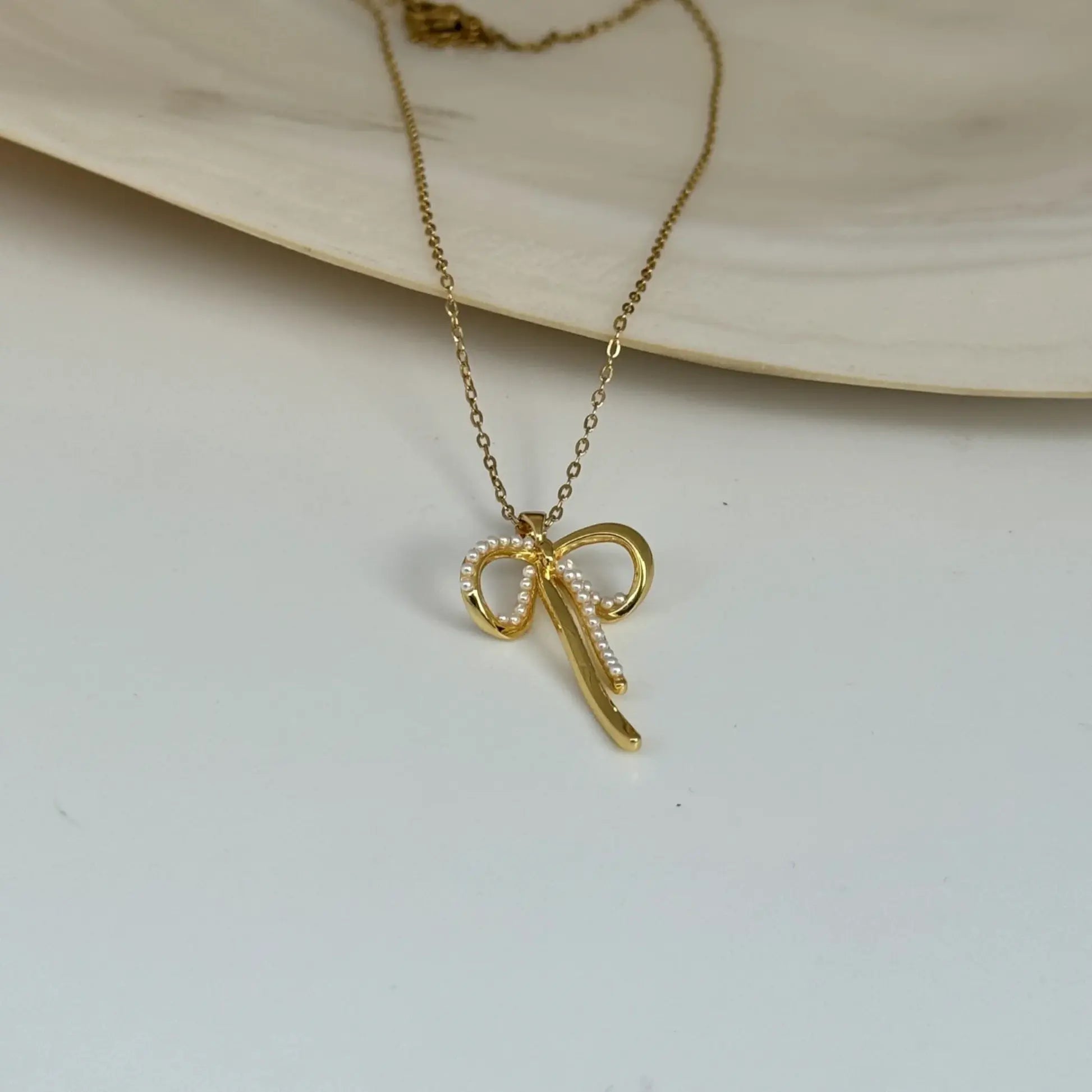 Add a playful yet sophisticated touch to your jewellery collection with the Sweetheart Bow Necklace. Featuring a delicately crafted bow paired with a charming heart pendant, this piece celebrates elegance and romance in a modern silhouette.
