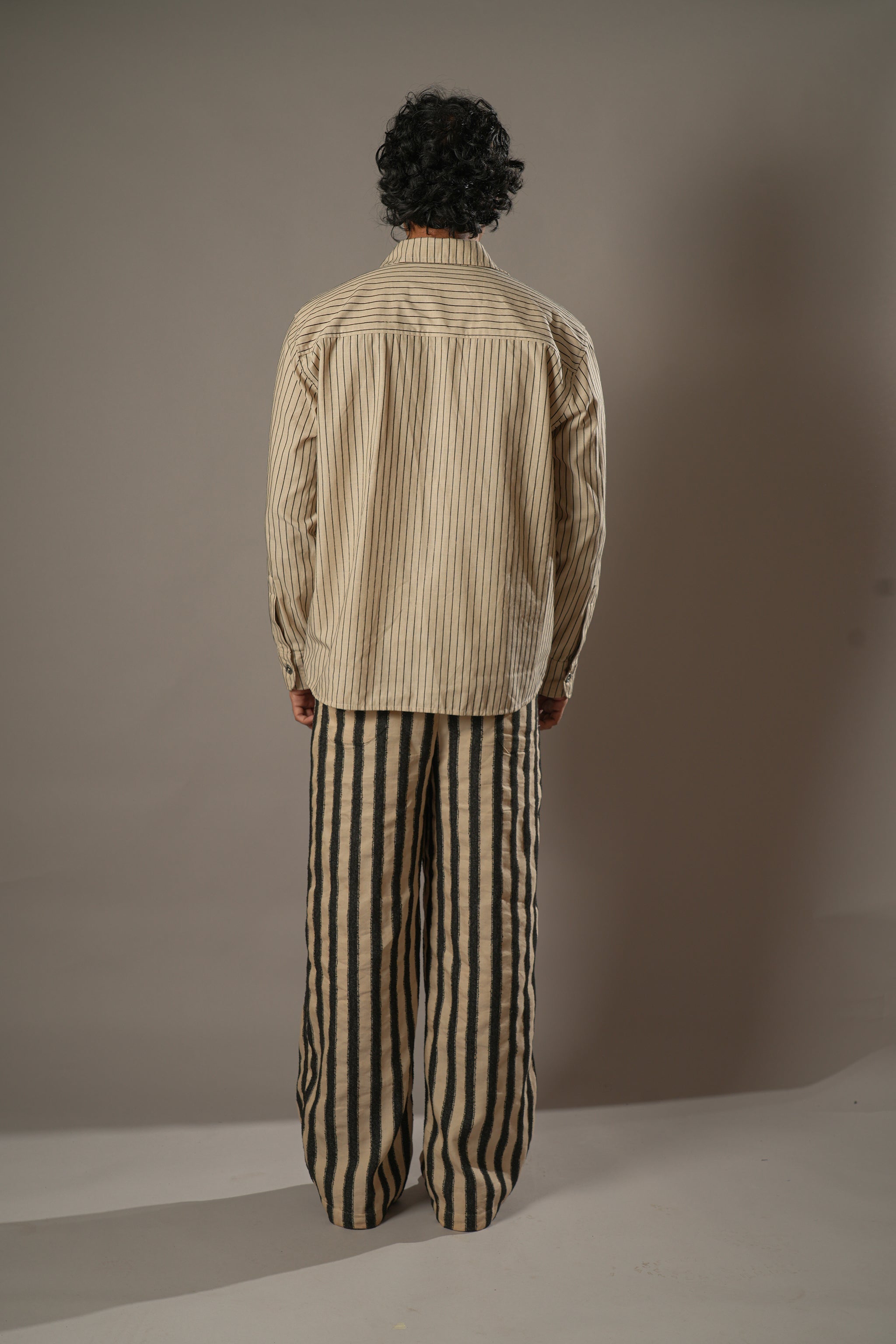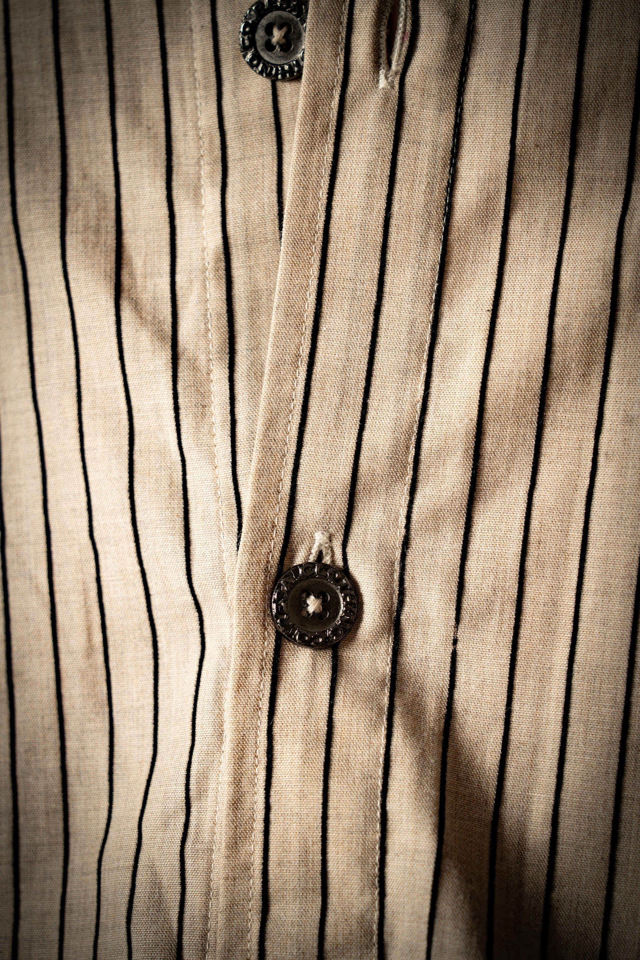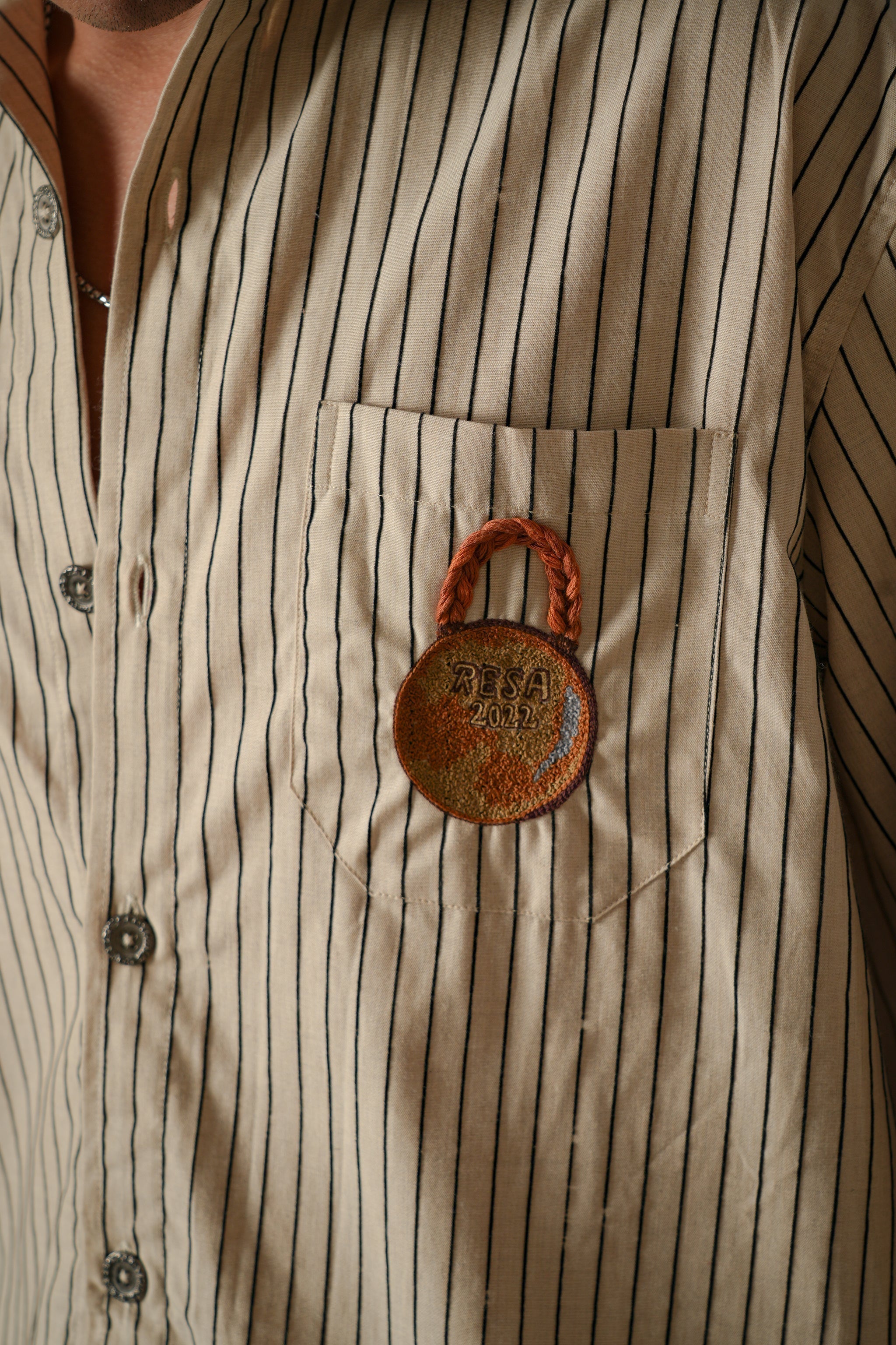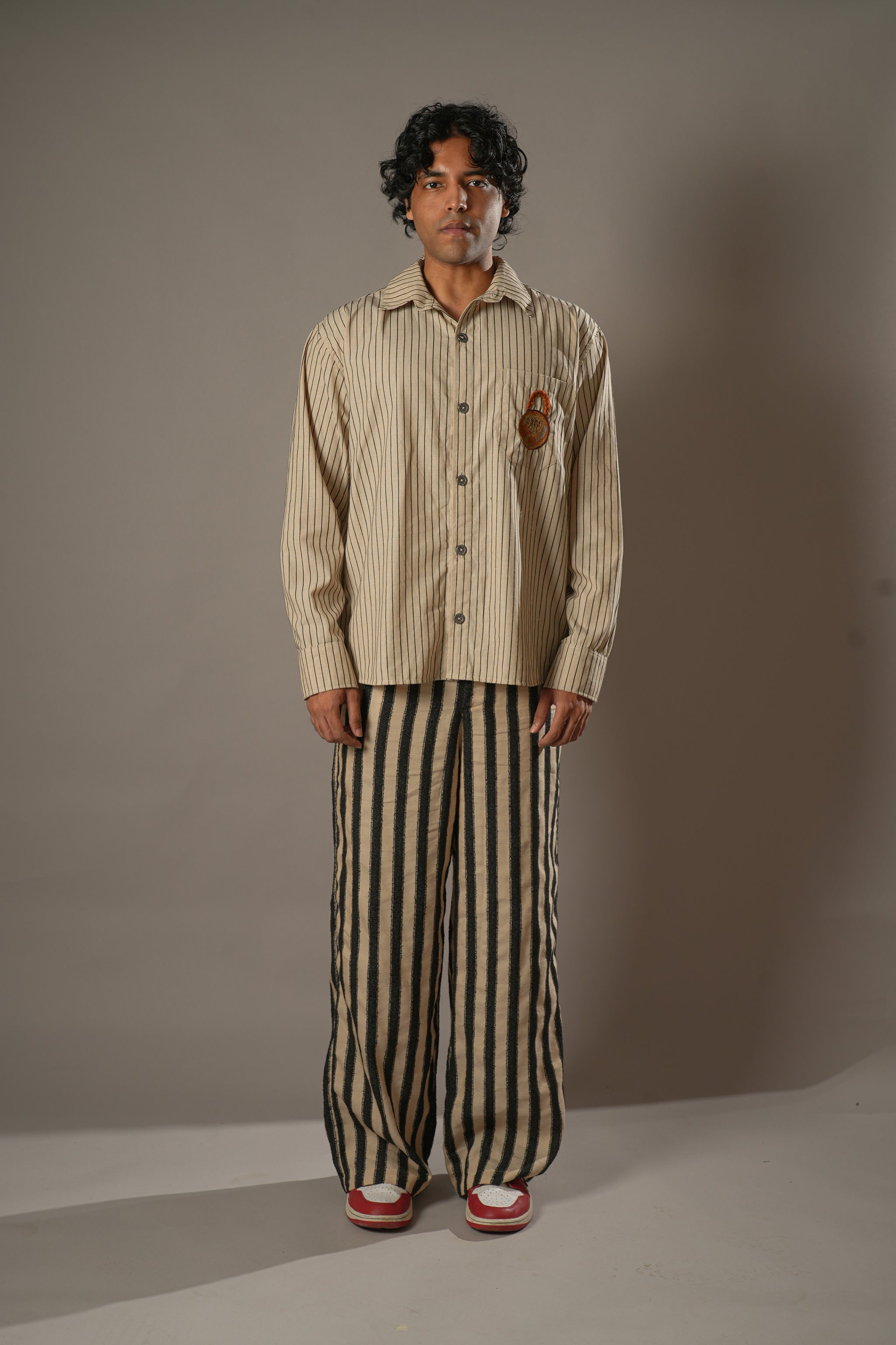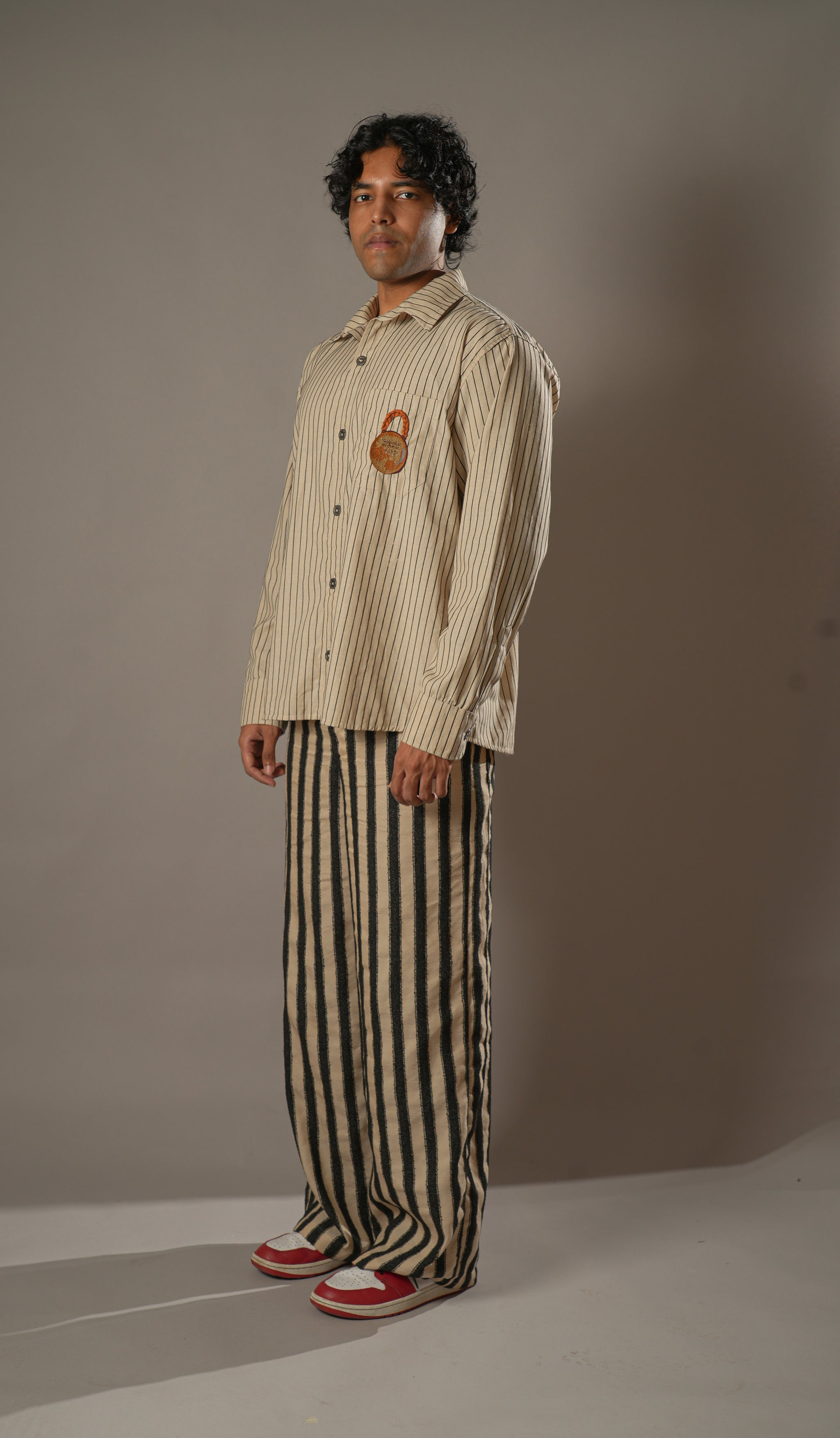 Design - A striped shirt with a Hand Embroidered lock motif.