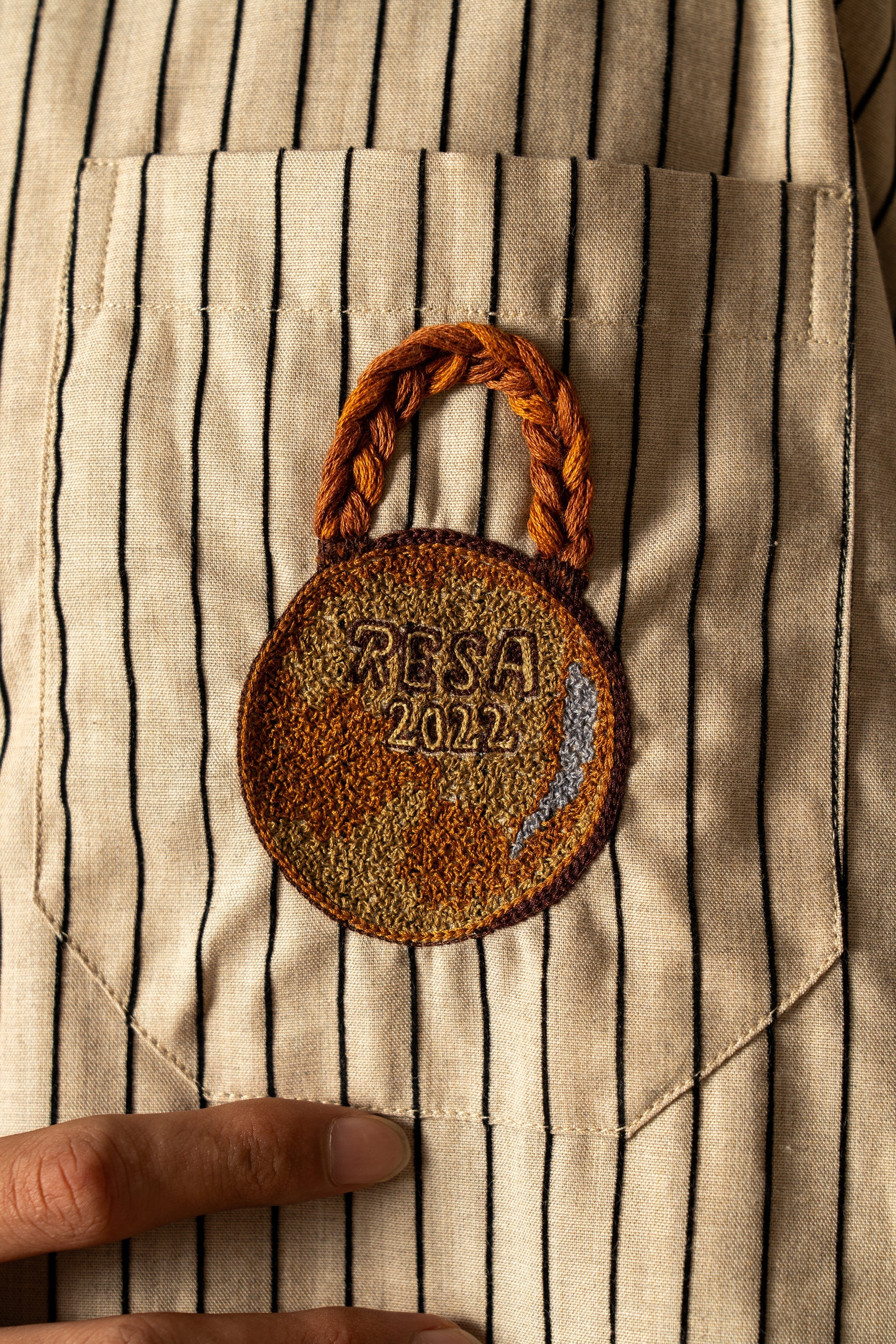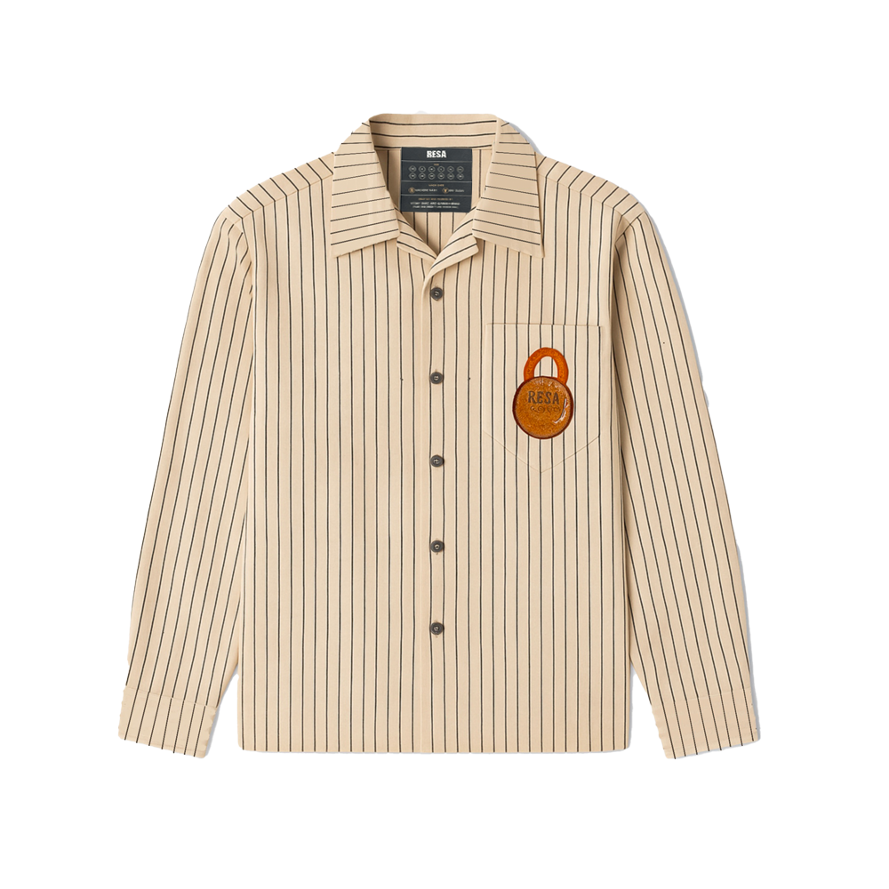Design - A striped shirt with a Hand Embroidered lock motif.