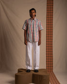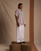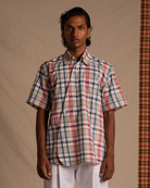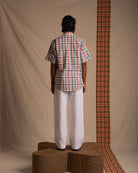 Asymmetric relaxed fit multicolour checked shirt with a shuttle cutout