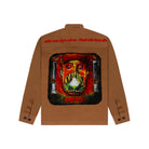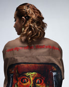 In pale khaki cotton, the Tamaso Vijaya Overshirt narrates a battle beyond the physical. The artwork depicts a betal demon’s face hidden in a forest, symbolising the shadows of hatred and social hostility. At its heart, a serene figure meditates — a creator at peace amid the storm, embodying the triumph of calm over chaos. This overshirt becomes more than apparel; it is a manifesto — a reminder that true victory lies not in aggression but in the quiet resilience of the spirit. Every artist carries this struggle, and every stitch carries their defiance.