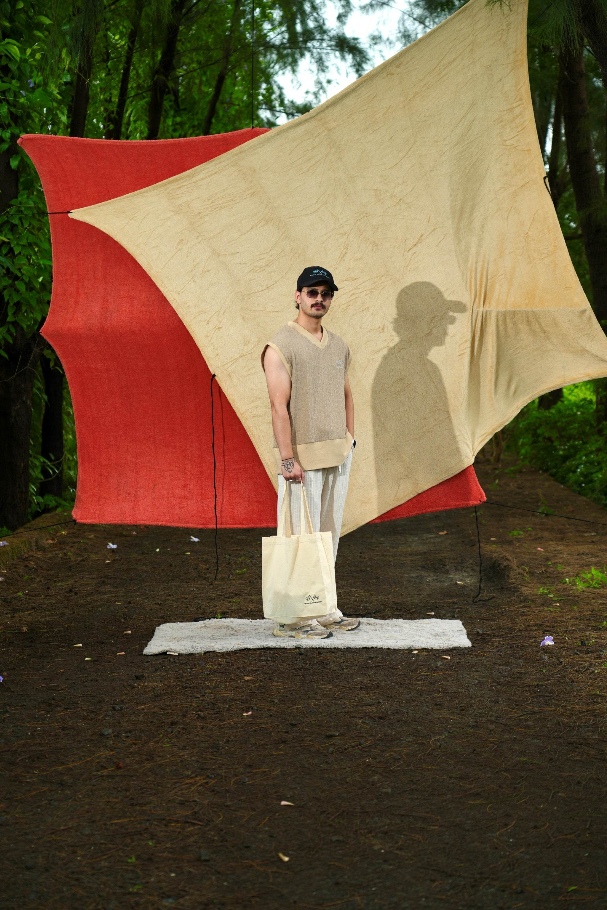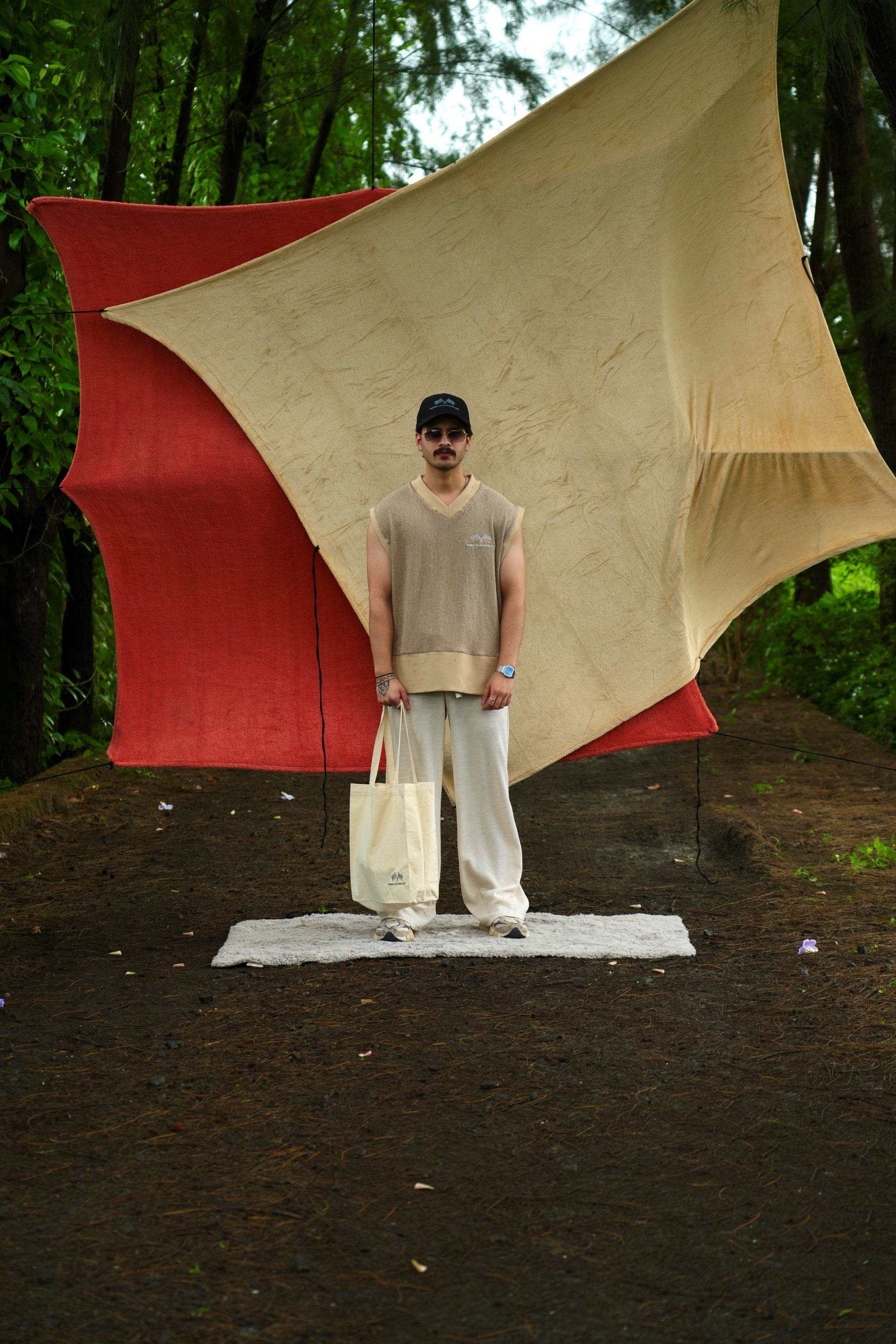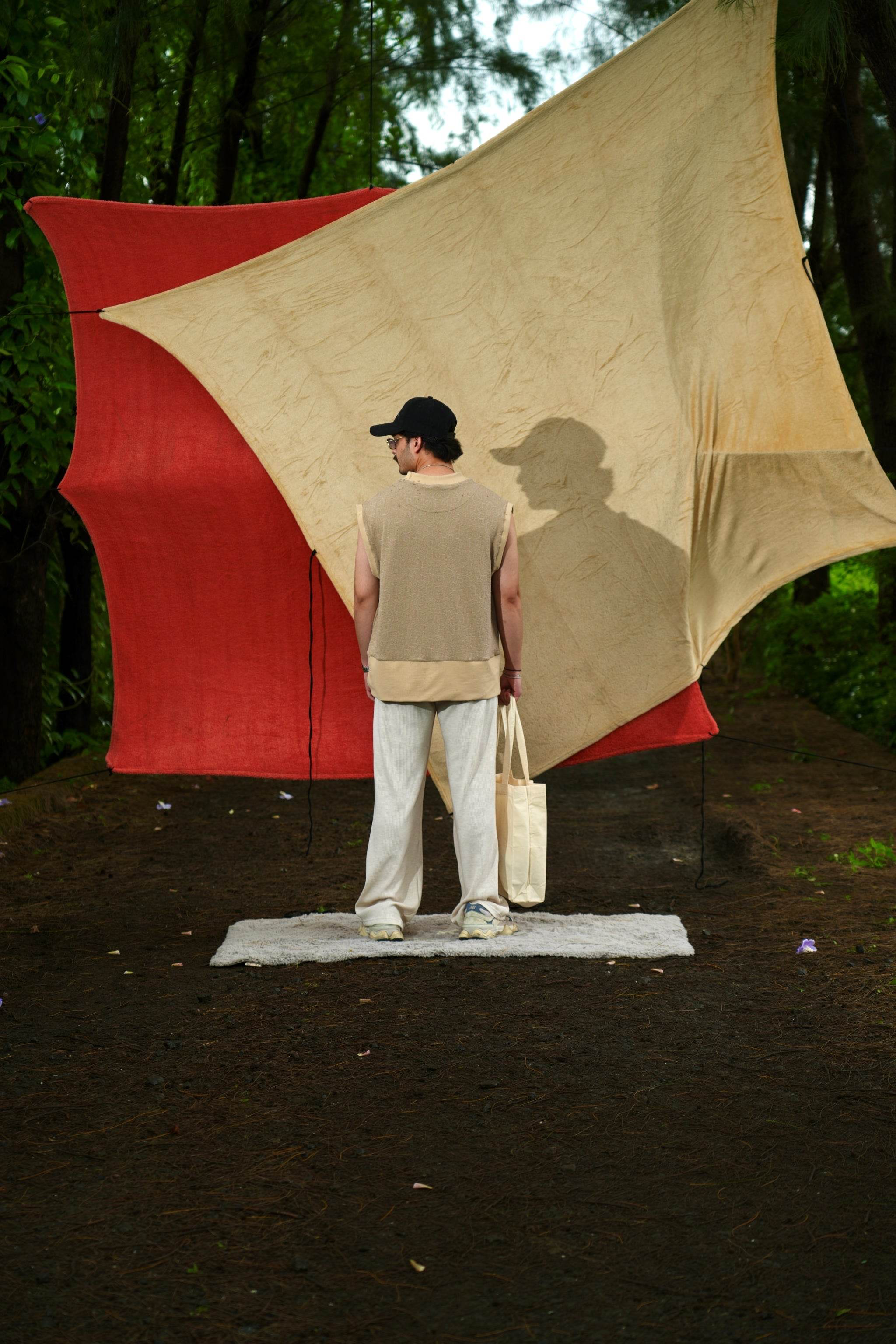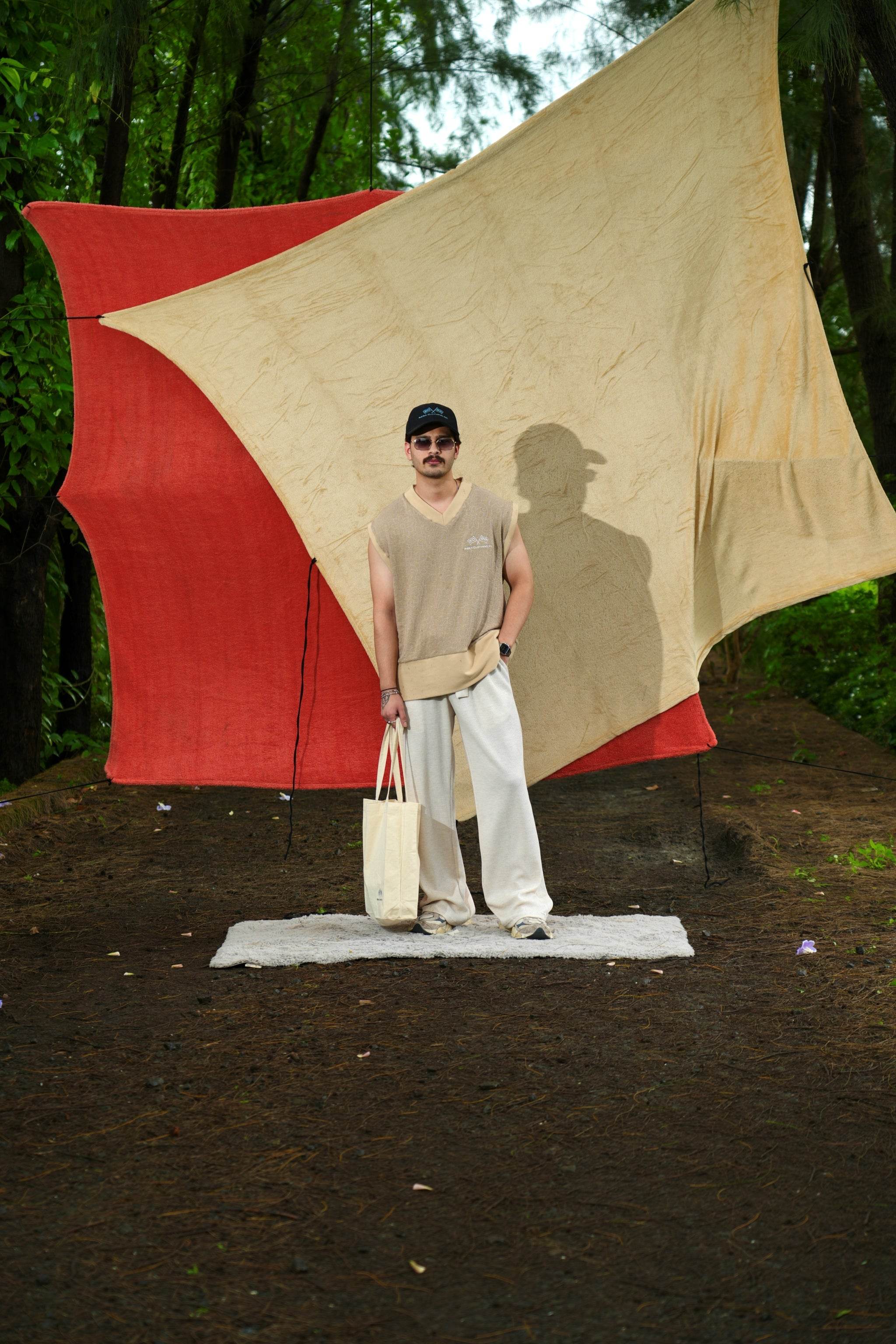 This refined sleeveless vest redefines classic tailoring, crafted from premium textured knit fabric that exudes sophistication. Designed in a crisp khaki hue, it features exquisitely detailed patterns that add a touch of elegance, elevating the vest into a standout wardrobe essential.