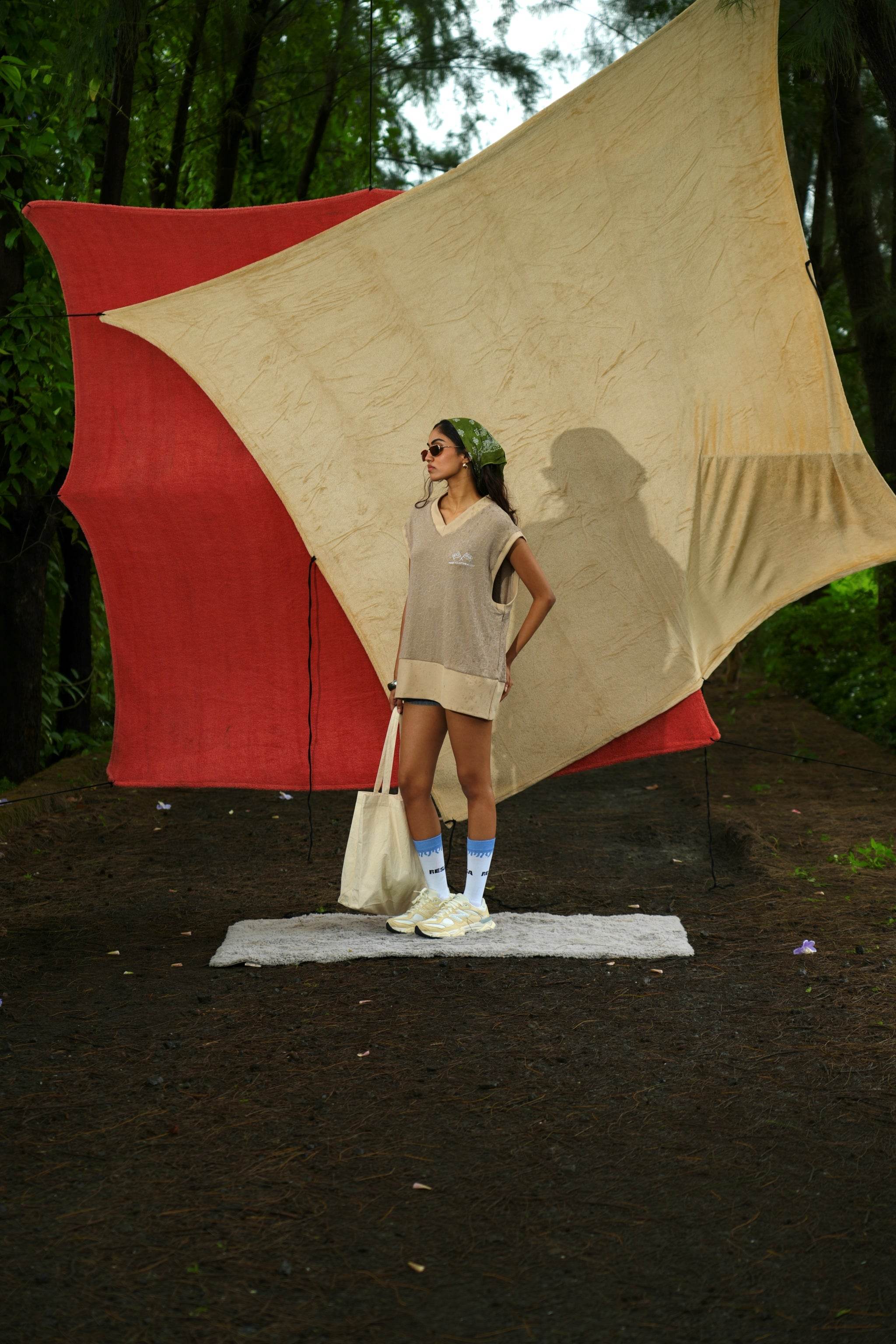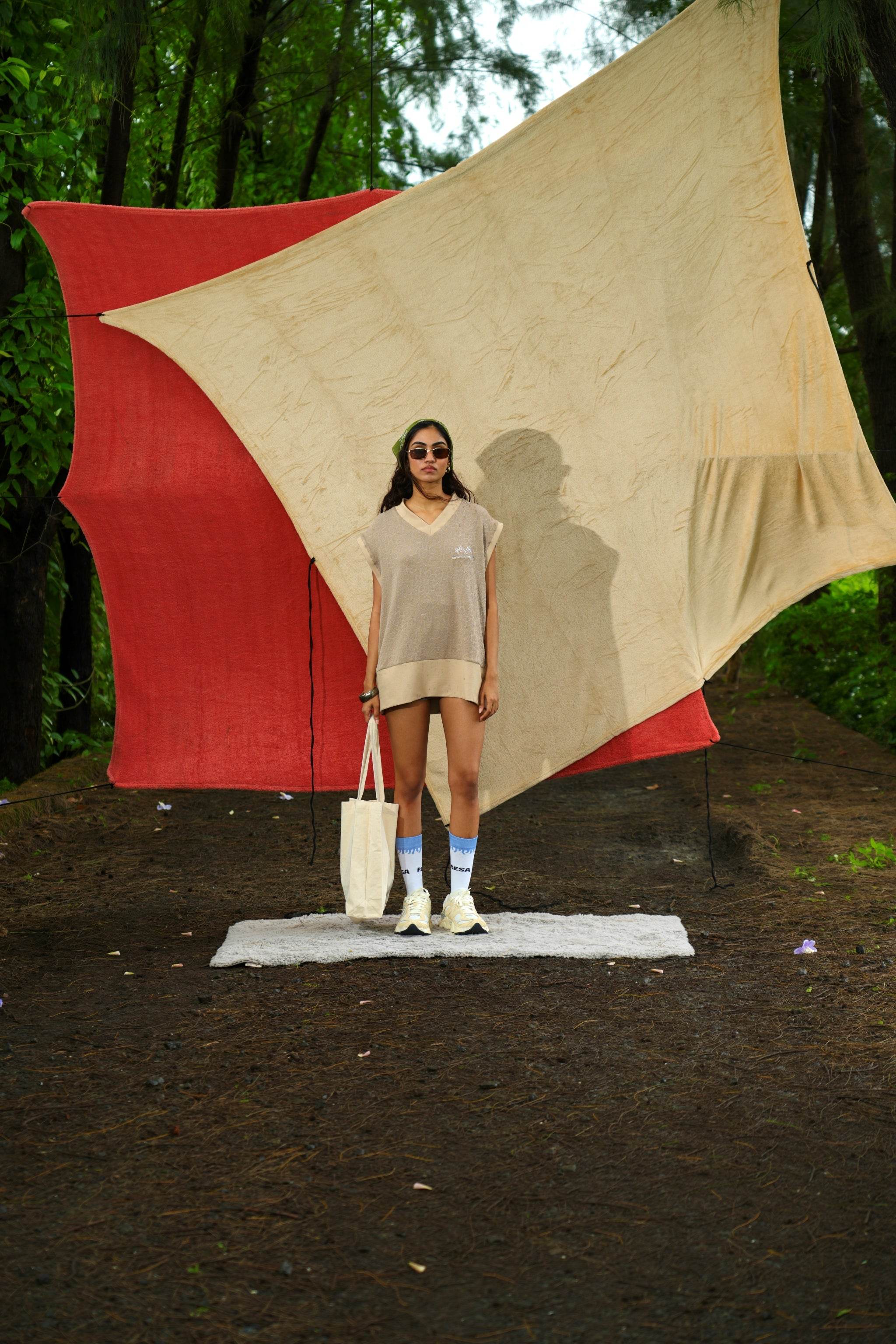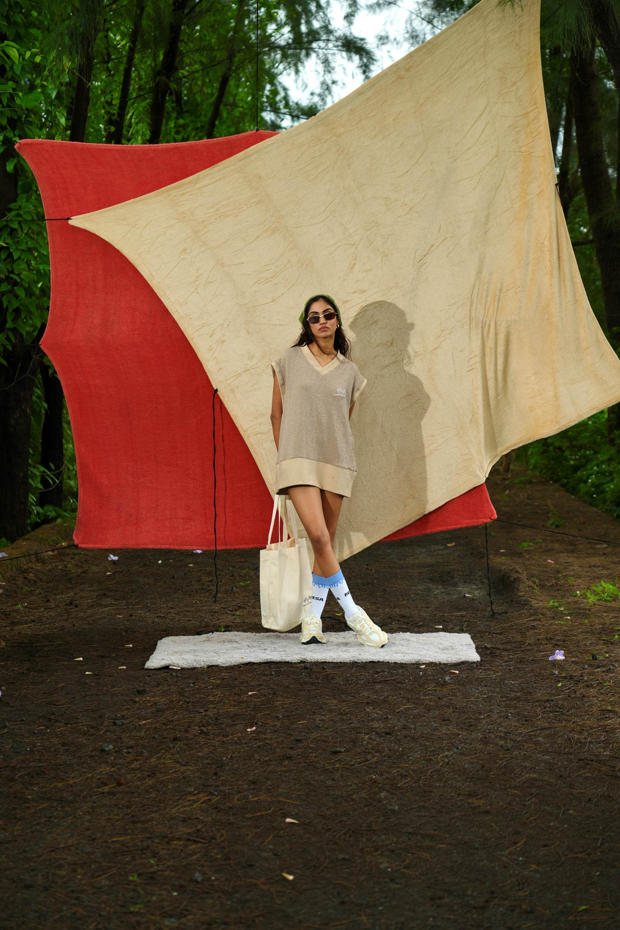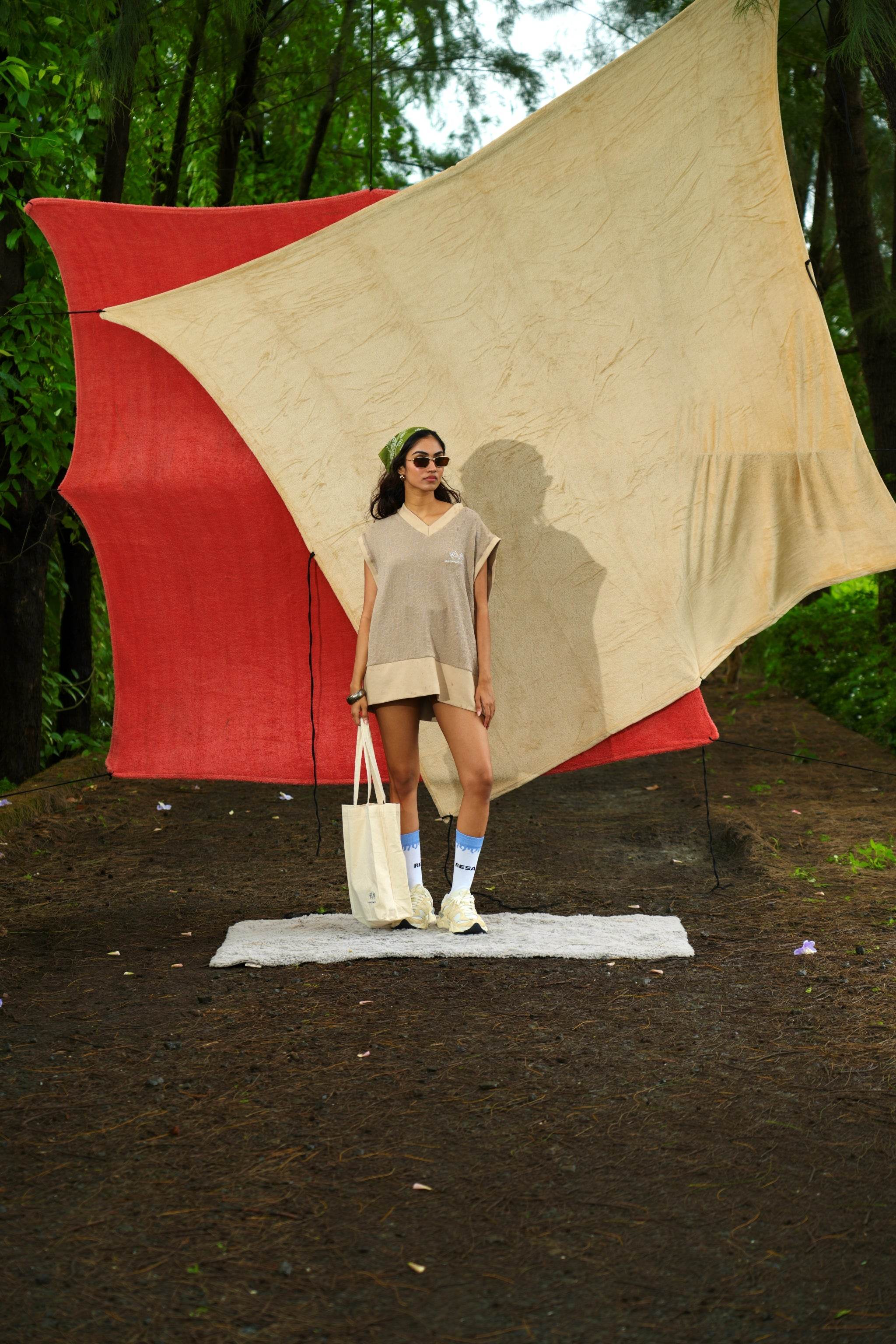 This refined sleeveless vest redefines classic tailoring, crafted from premium textured knit fabric that exudes sophistication. Designed in a crisp khaki hue, it features exquisitely detailed patterns that add a touch of elegance, elevating the vest into a standout wardrobe essential.