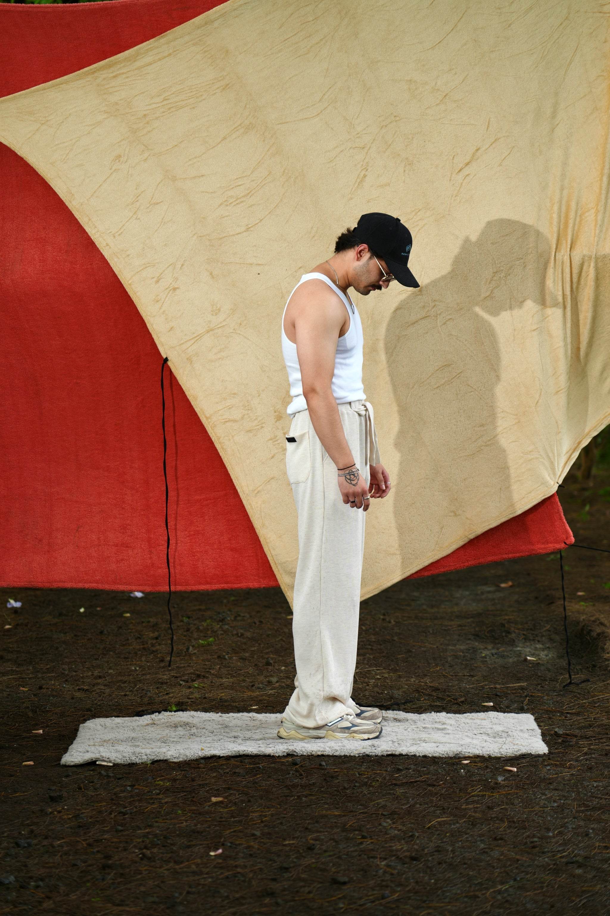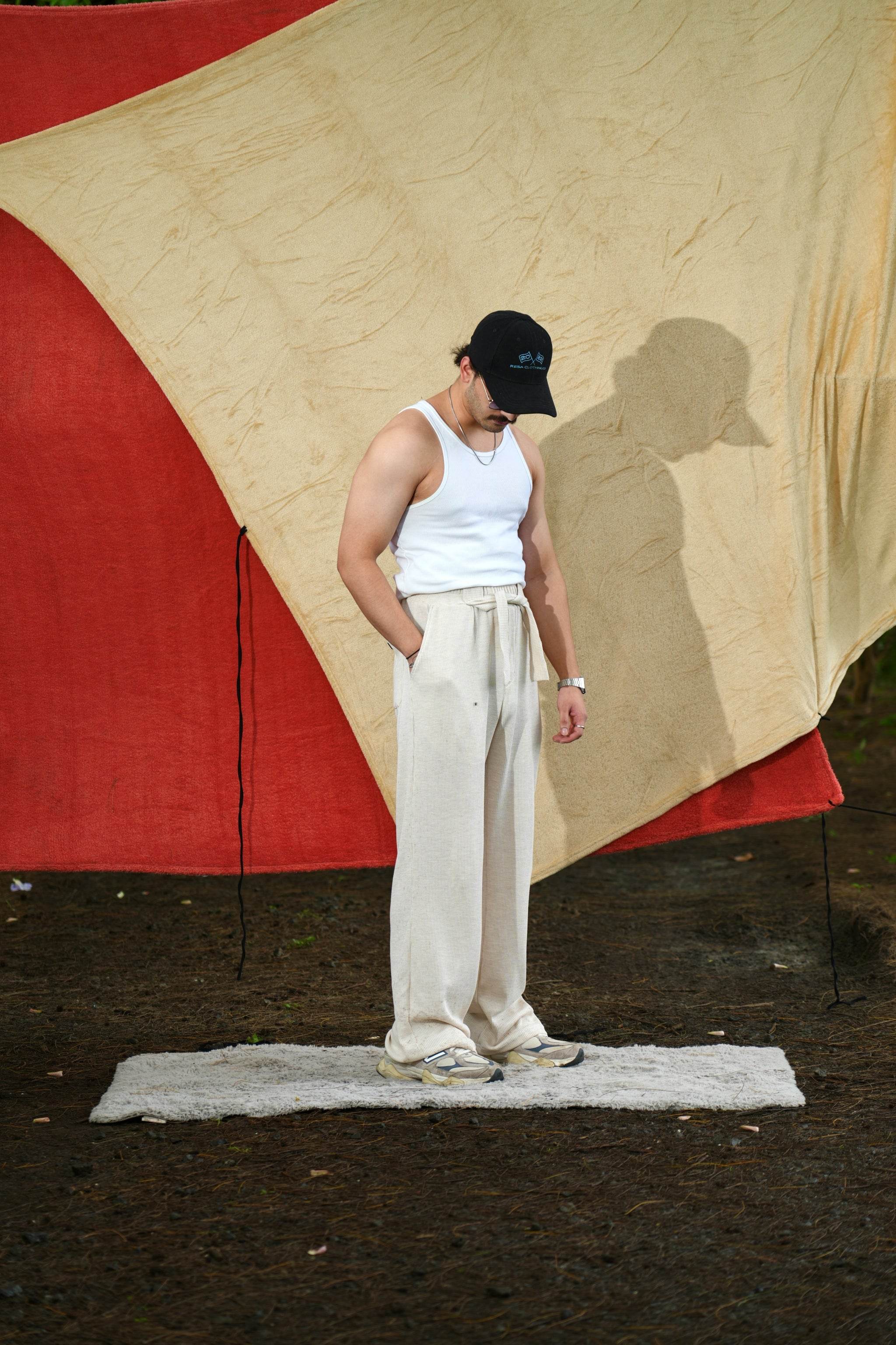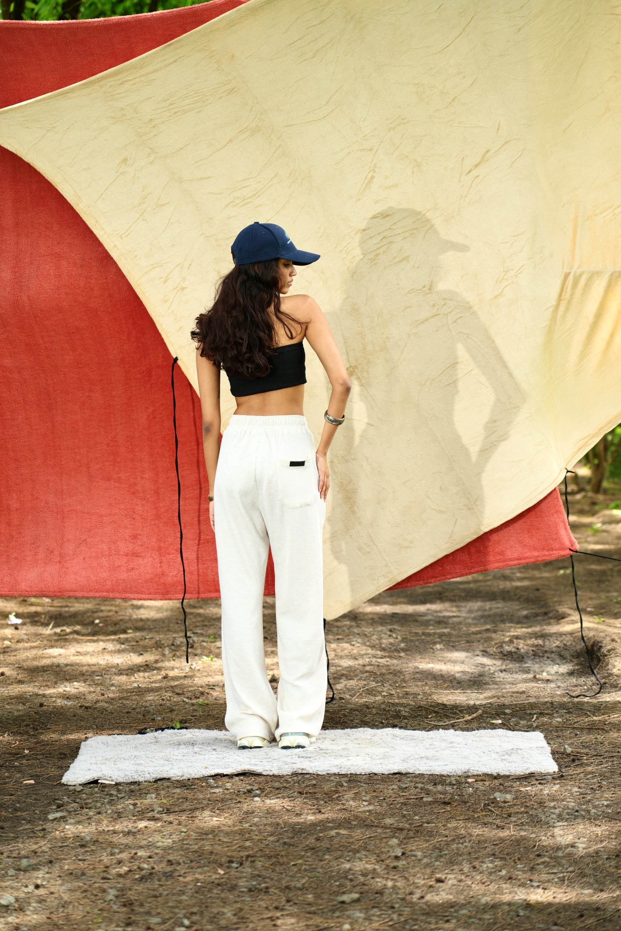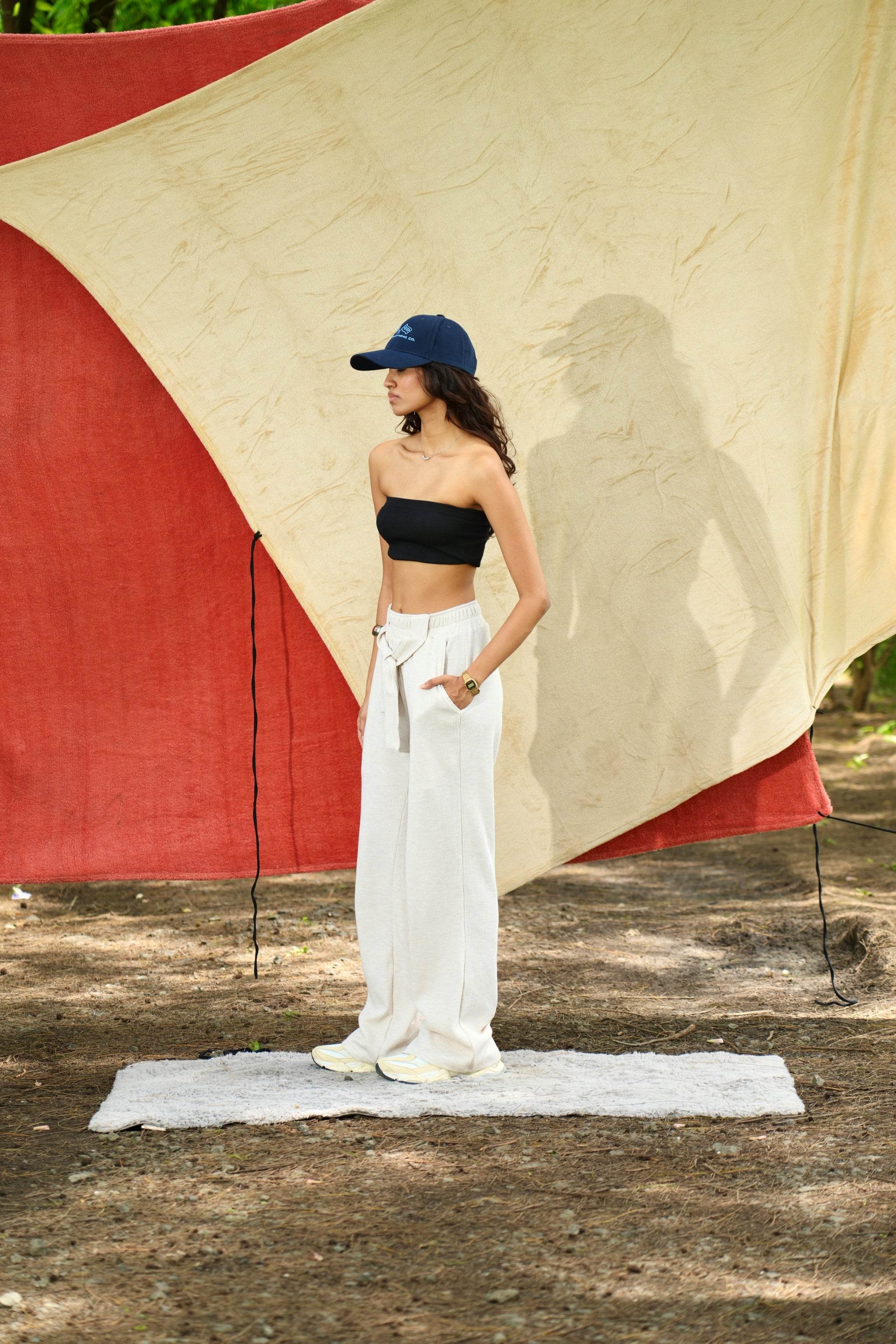 Designed in an elegant off-white hue, this piece is crafted from textured waffle knit fabric, offering a refined drape and a straight fit. There are two dummy broad strings stitched to the front belt that adds to the lounge look. Its rich fabric and understated silhouette make it a timeless addition to any collection.