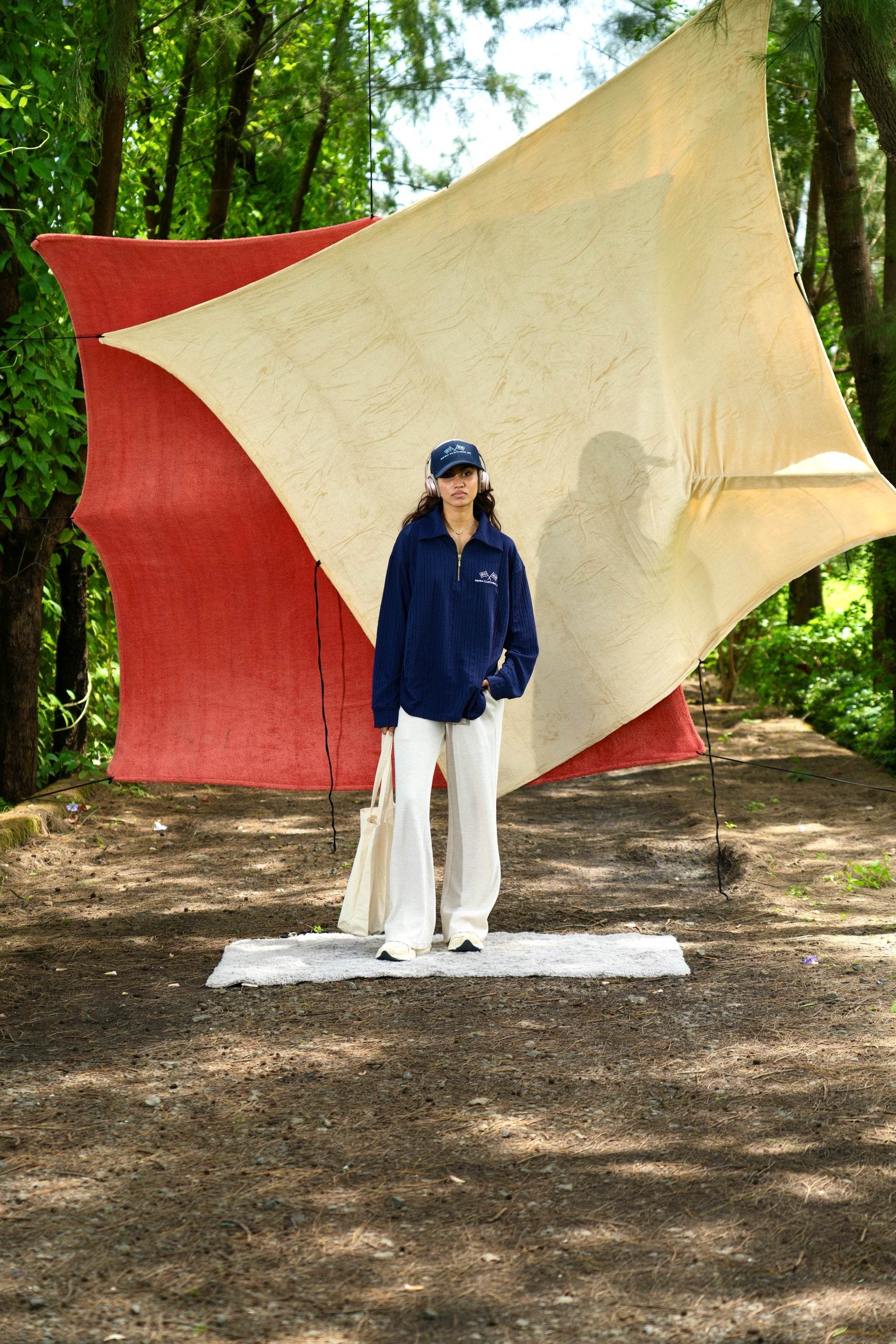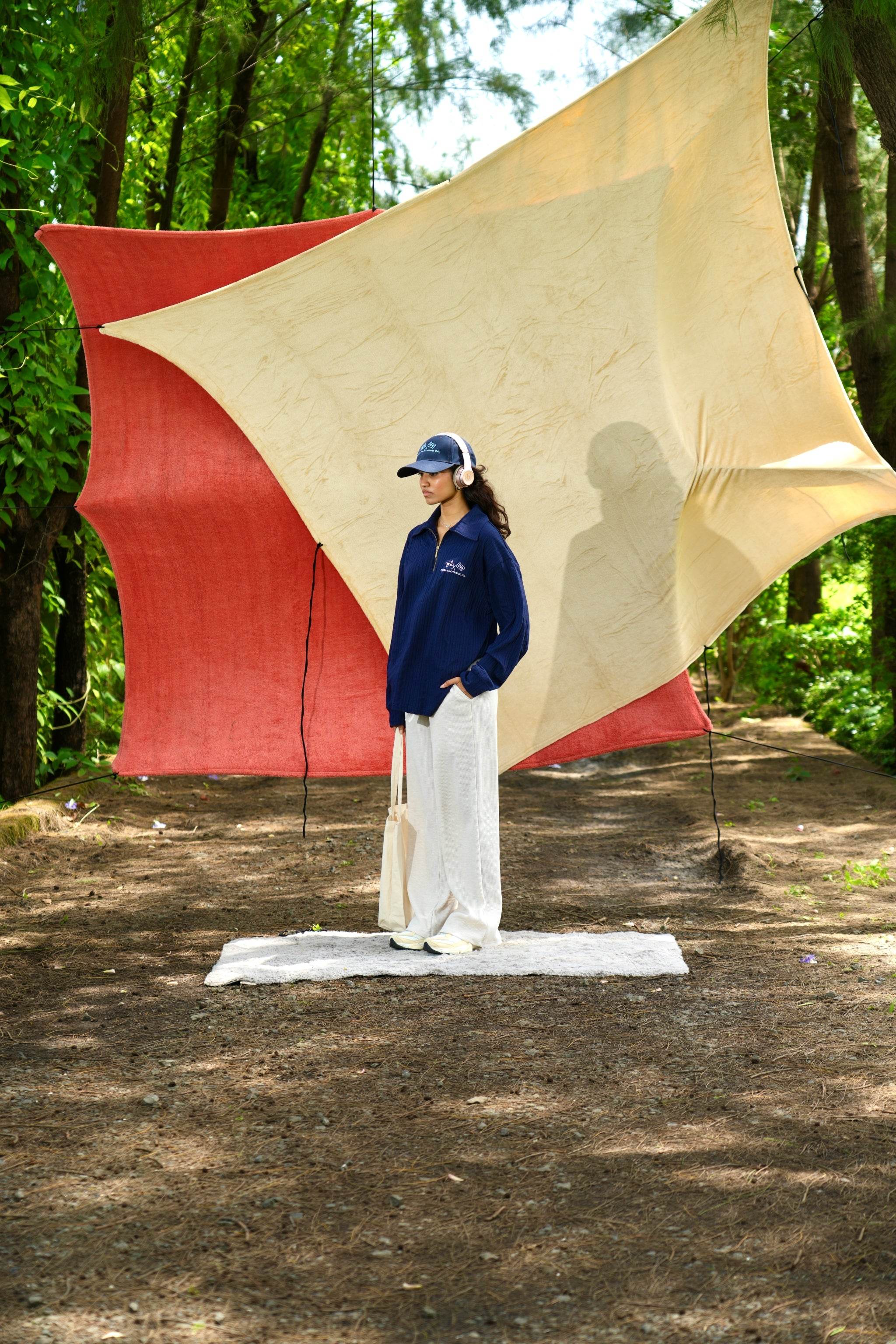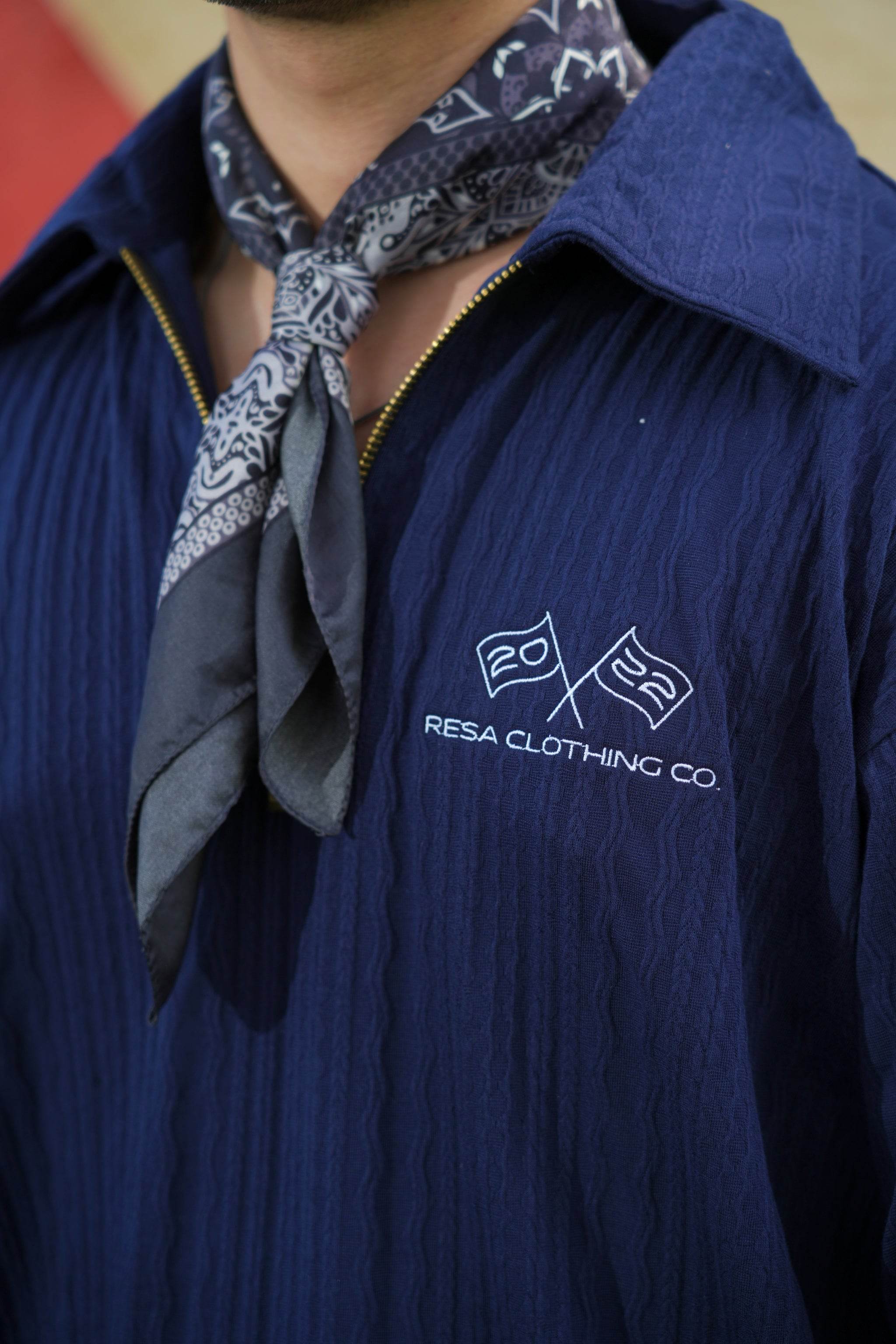 This textured polo, crafted from lightweight knit fabric in a rich navy blue shade blends comfort with contemporary style. Featuring intricate embroidery of the TAS logo on the front, it’s finished with a sleek golden zipper and an oversized collar for a statement-making look to add the RESA touch to a classic silhouette.