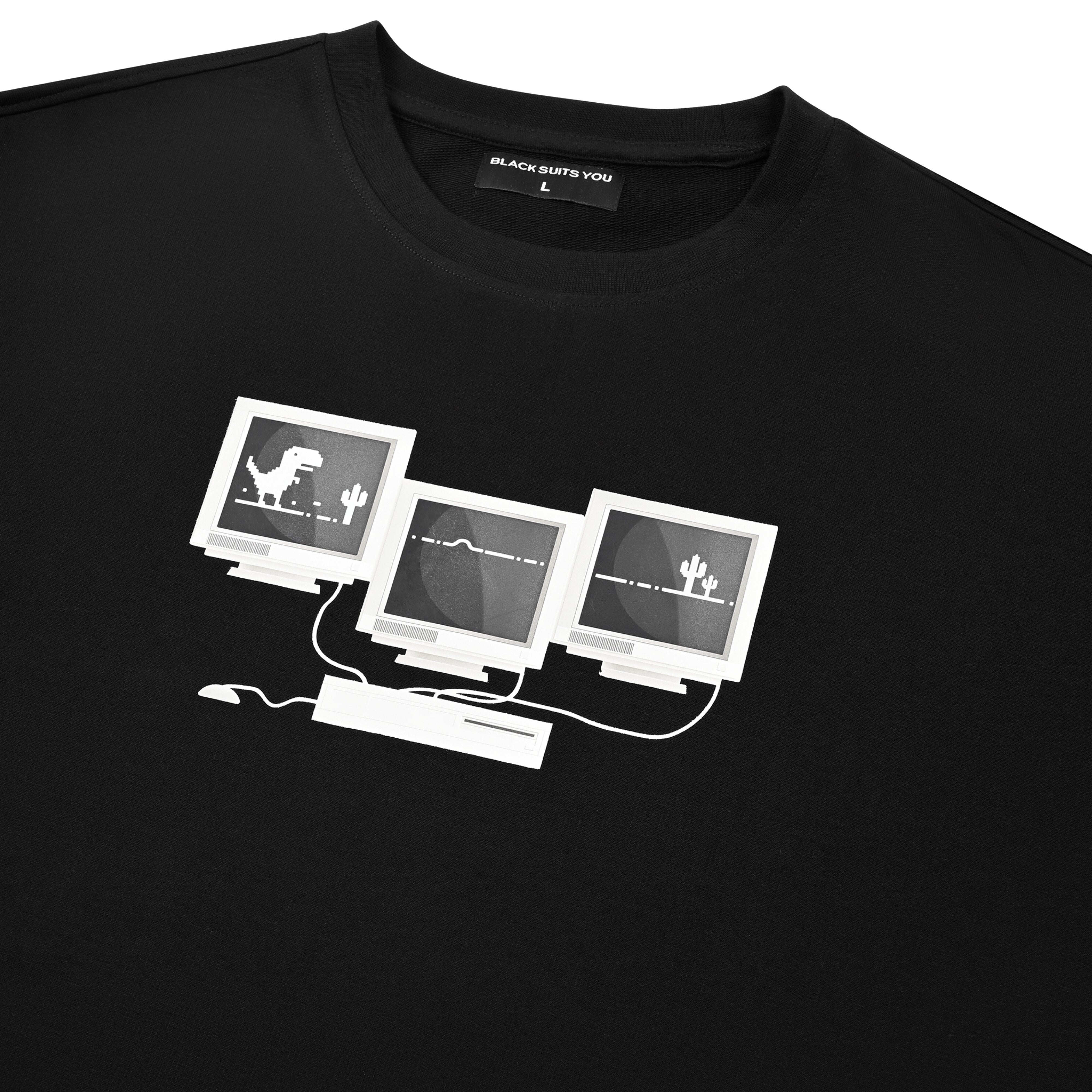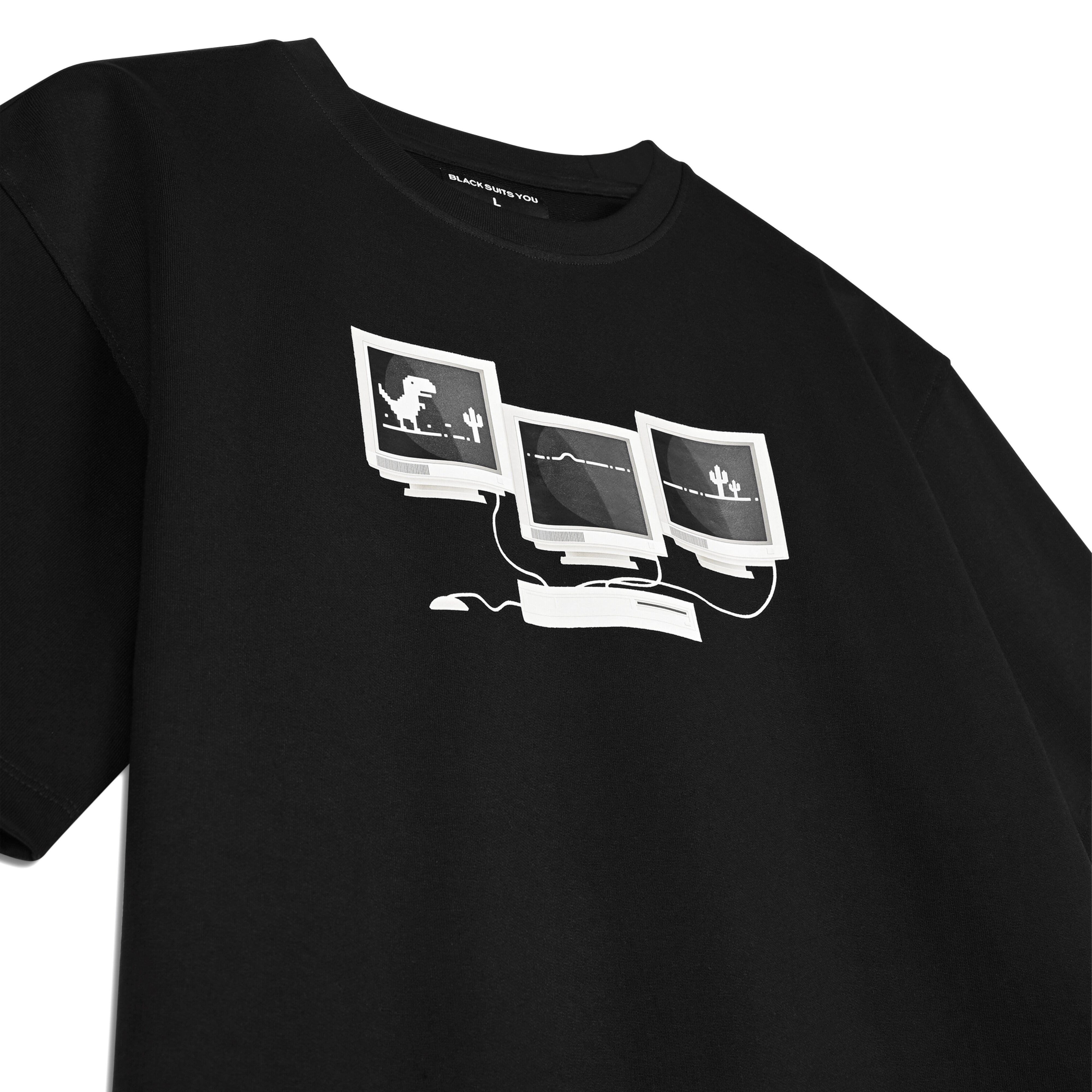 Indulge in the nostalgia of old wire computer/desktops, but with a modern twist. The TECHNICAL GLITCH T-SHIRT showcases graphics of classic gaming and glitches, bringing joy to any outfit. A sophisticated nod to the past, this t-shirt is perfect for the nostalgic gamer in you.