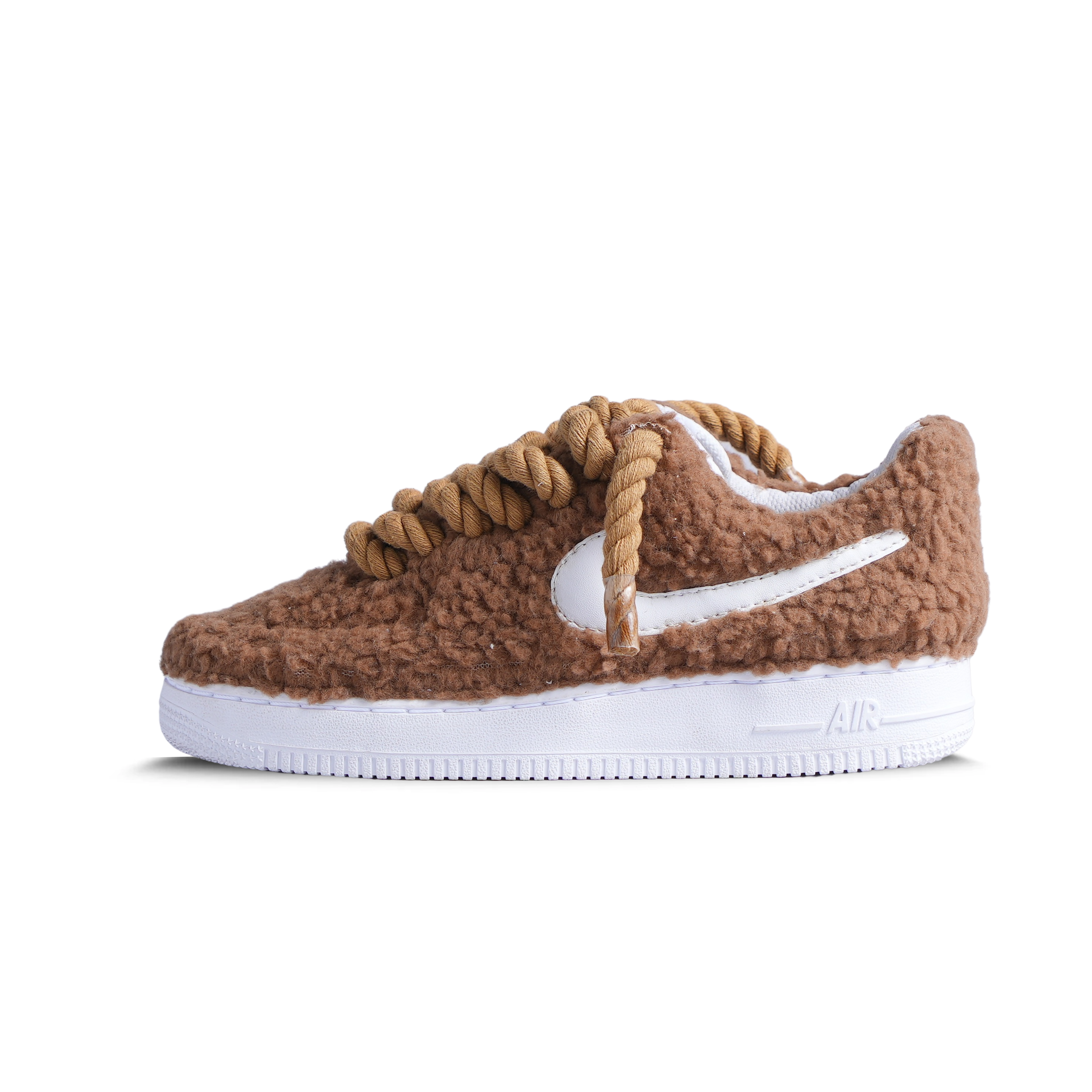 Get cozy with these TEDDY FUR AF1s! Hand stitched with soft teddy fur and complete with matching rope laces, these sneakers will keep you warm and stylish all day. (Maybe even hug-worthy. No promises though.)