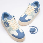 - Lacing: 12mm Flat Polyester Laces in Cream and Sky Blue