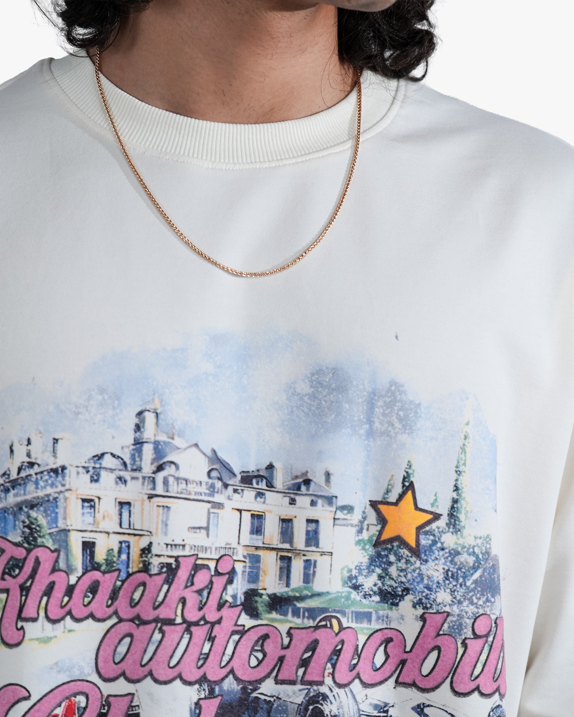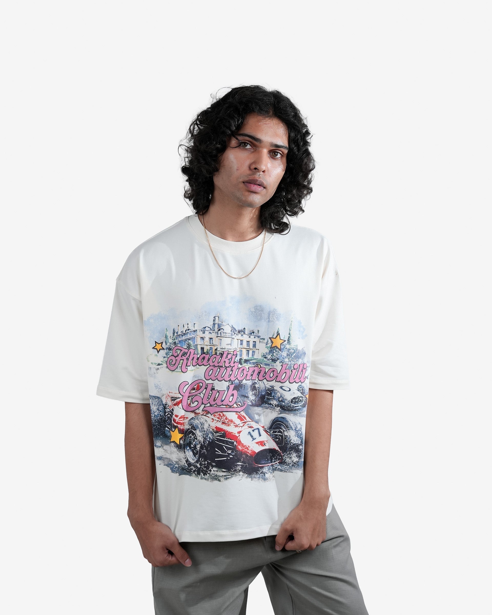 The Automobili Club - Off-White Flock Printed Oversized T-shirt