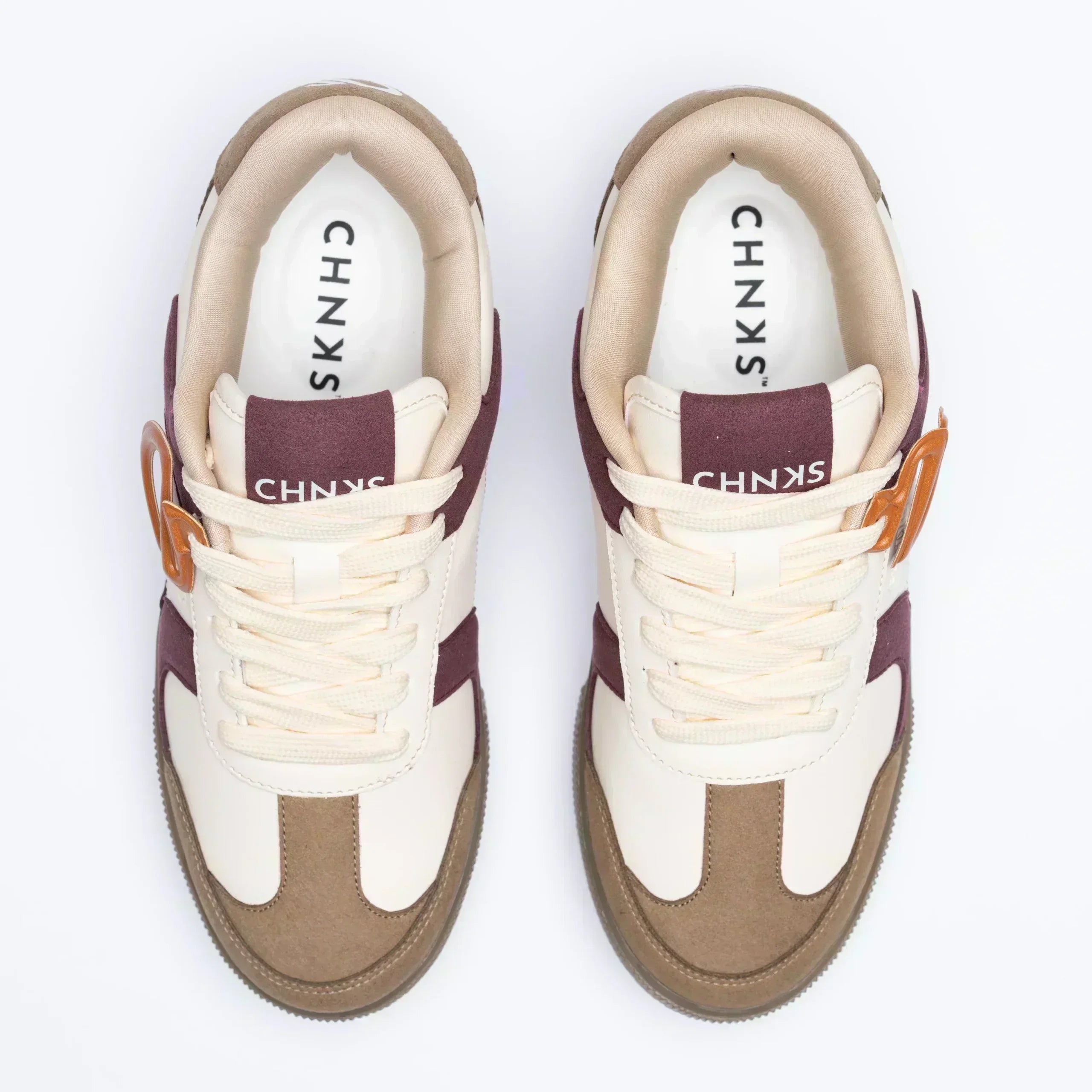 Description:CRANBERRY CHNKS is bold yet refined maroon sneakers for men and women—rich, deep, and effortlessly stylish. Inspired by autumn harvests, vintage aesthetics, and the perfect balance of sweet and tart, this pair blends warm burgundy, creamy neutrals, and earthy browns for a timeless appeal. Whether you're making a statement in the city or exploring new streets, it brings a sophisticated edge to everyday wear.