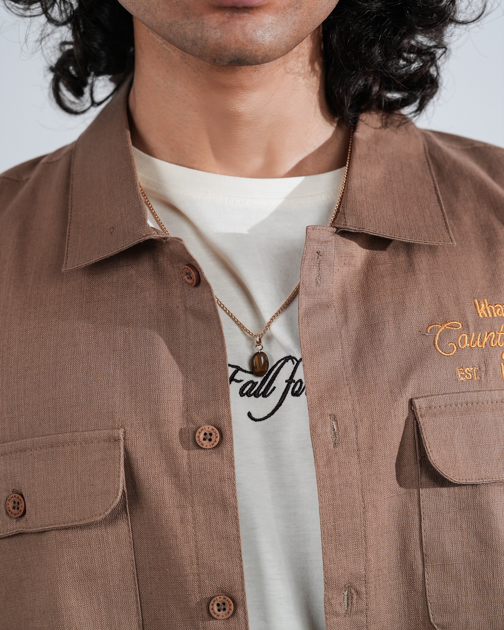 The Dreamer Shirt is a relaxed khaki linen piece that exudes fearless elegance and quiet sophistication. Structured chest pockets with the intricate 2.5 lakh-stitch embroidery in relaxed fit. It's a versatile piece & can be styled as a Shacket.
