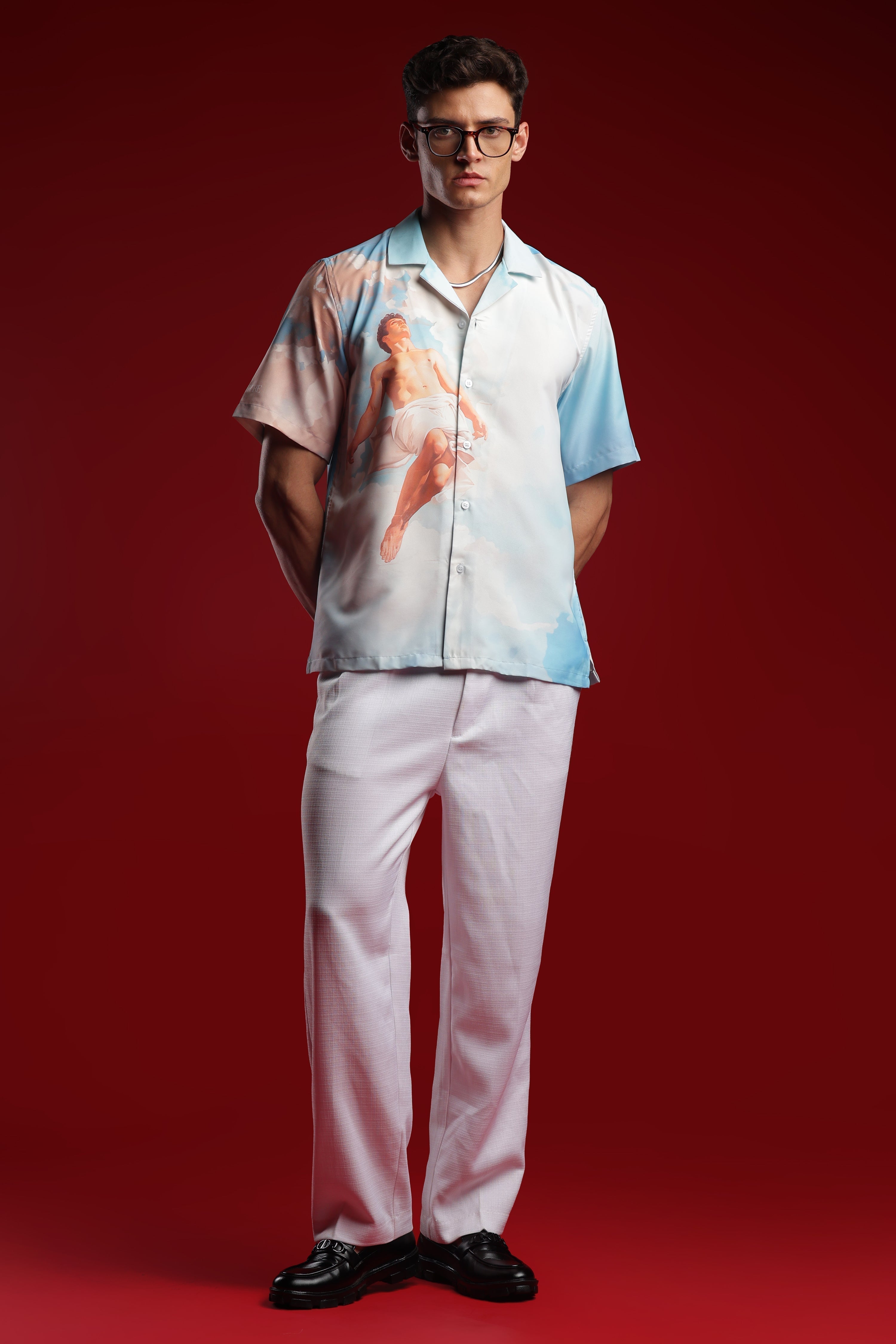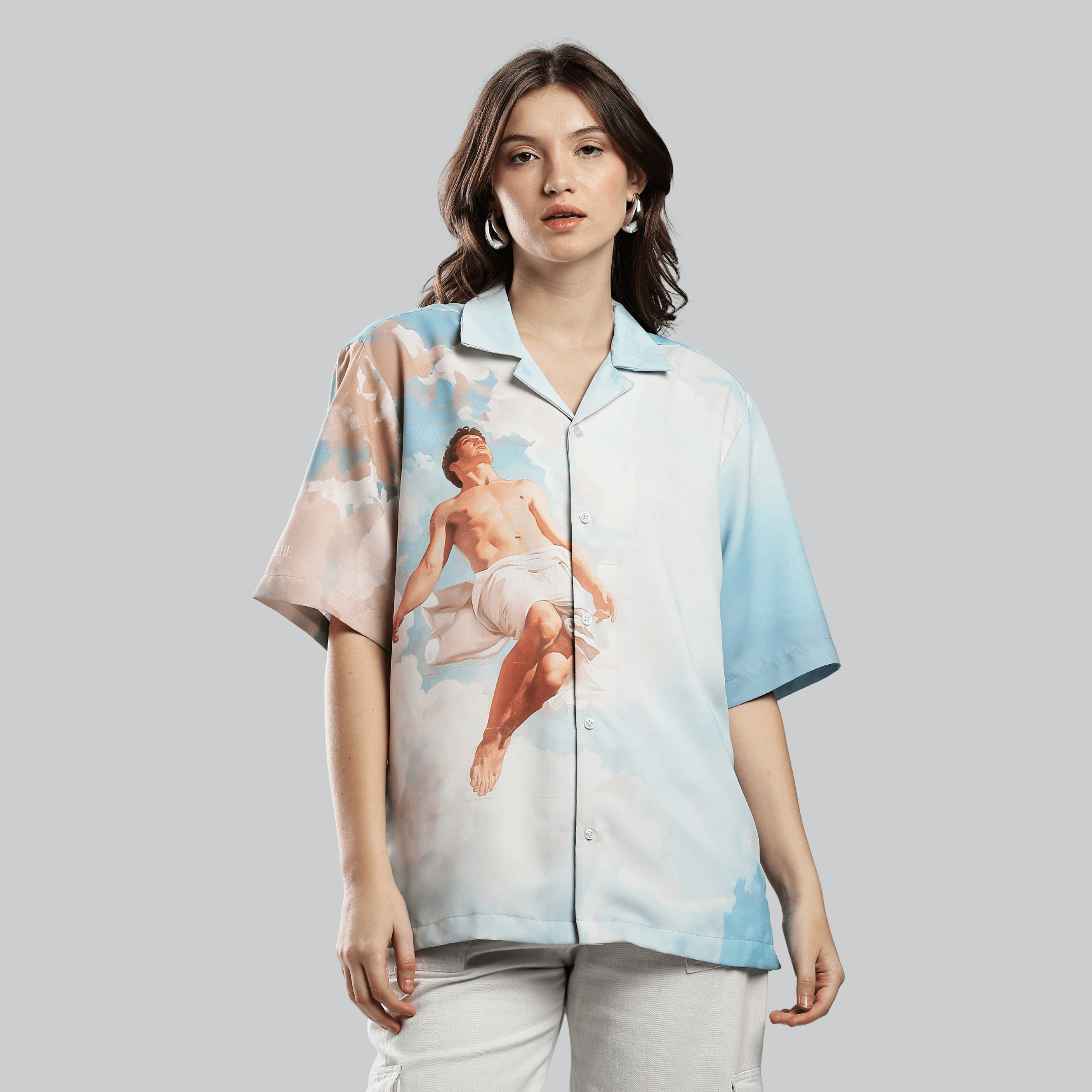 Elevate your casual fashion game with the I'MHERE Exclusive "The falling Icarus" Printed Shirt. Make a bold statement wherever you go with this uniquely designed piece.