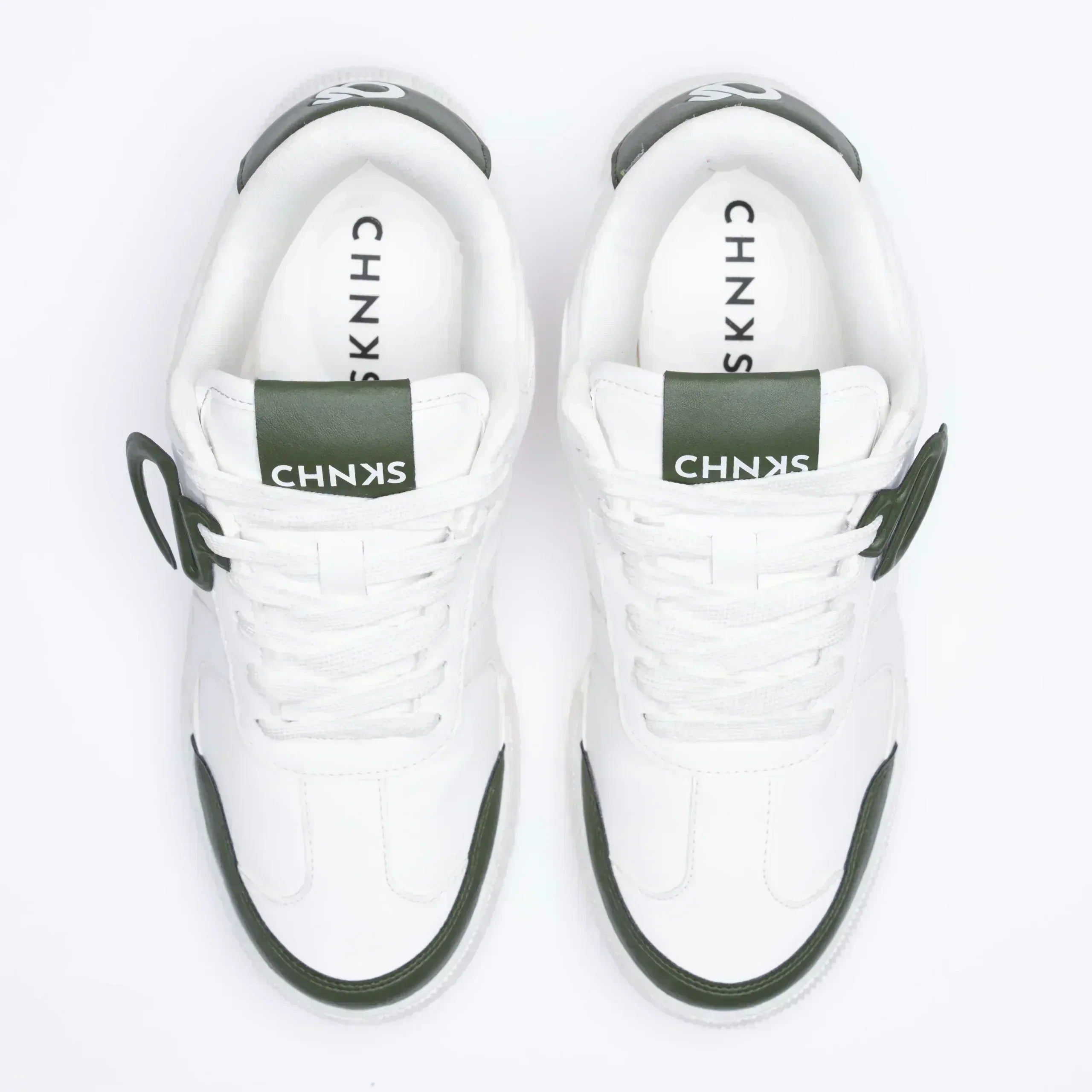 Description:ICY CHNKS, - white sneakers for men and women -a fresh drop of cool. It blends crisp white with deep green, making every step feel effortlessly clean. Whether you're on the move or taking it easy, this pair brings a chill vibe with a sharp edge.