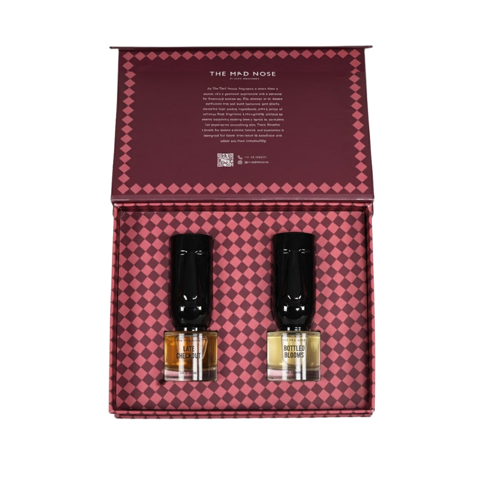 Bottled Blooms is its softer side, jasmine, tuberose, and rangoon creeper in full bloom. It’s the scent of quiet confidence and easy charm, the kind that lingers without trying too hard.