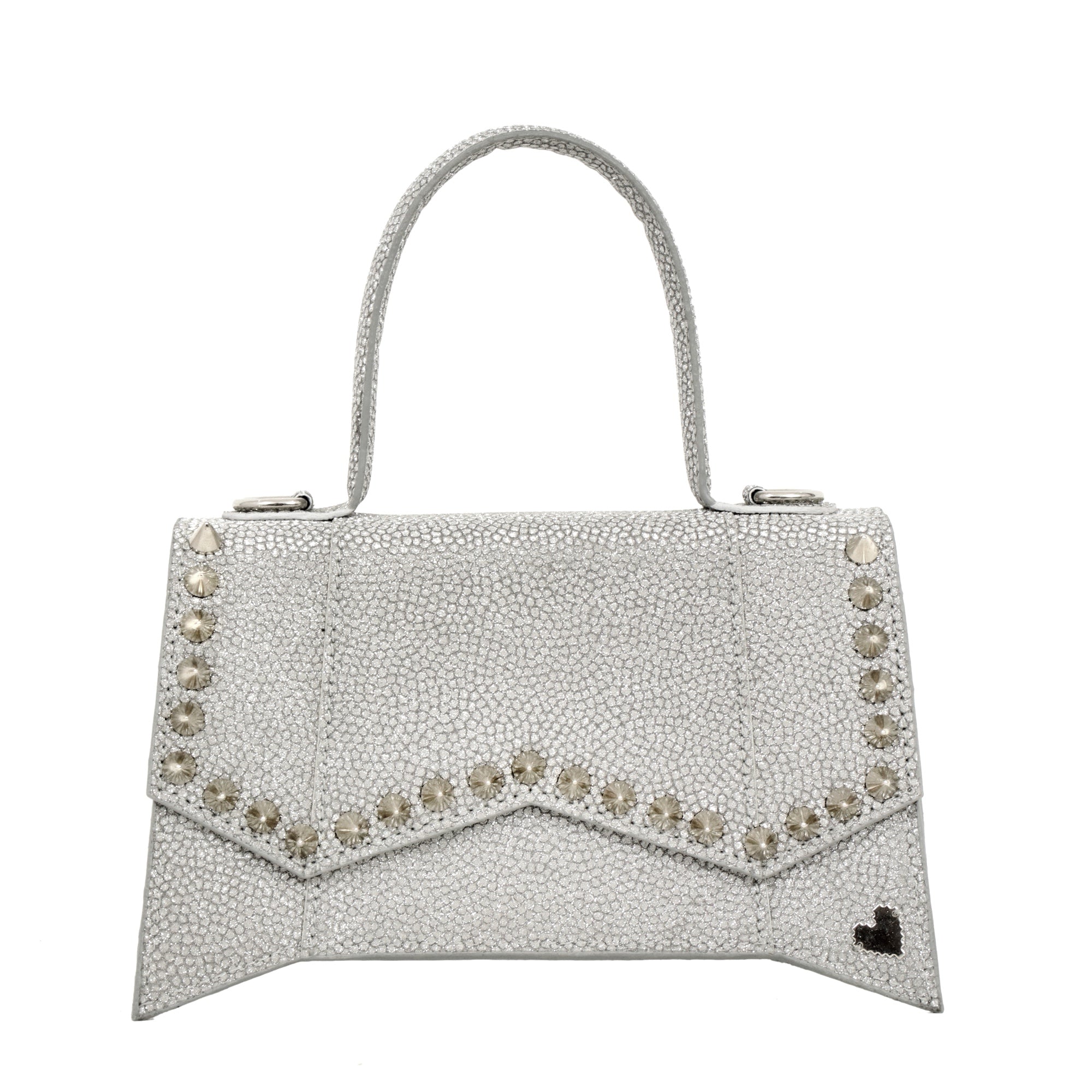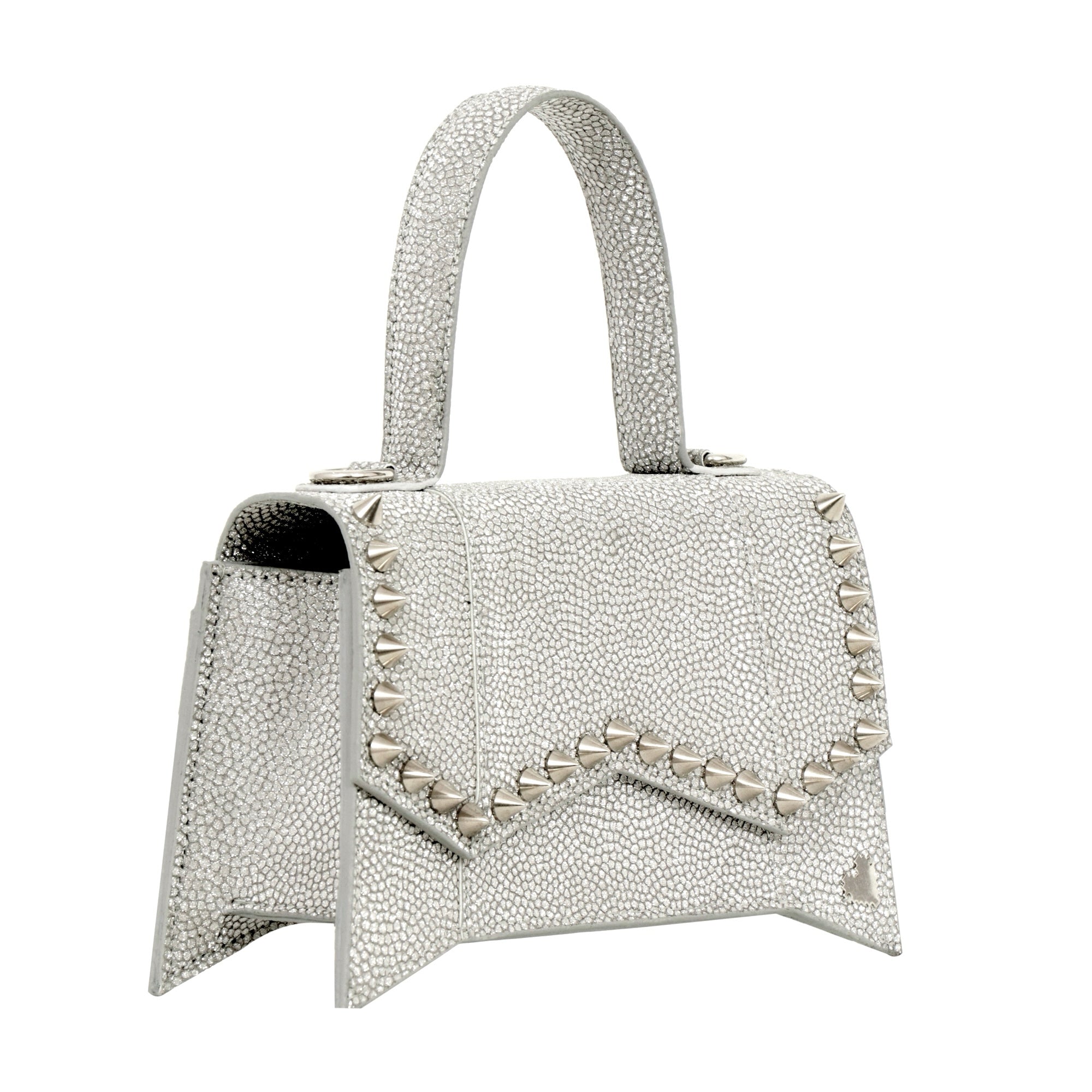 Kissr presents The Scarlett, the mini handbag that's anything but demure. This statement piece is perfect for the woman who isn't afraid to shine, its glittery black or silver exterior catching the light with every step. The Scarlett isn't just about looks, though. Its lifted base adds a touch of edge while keeping the bottom pristine, and the detachable crossbody strap offers versatility. Wear it as a chic clutch for weddings or detach the strap for a cool, hands-free vibe that complements your hottest streetwear looks.