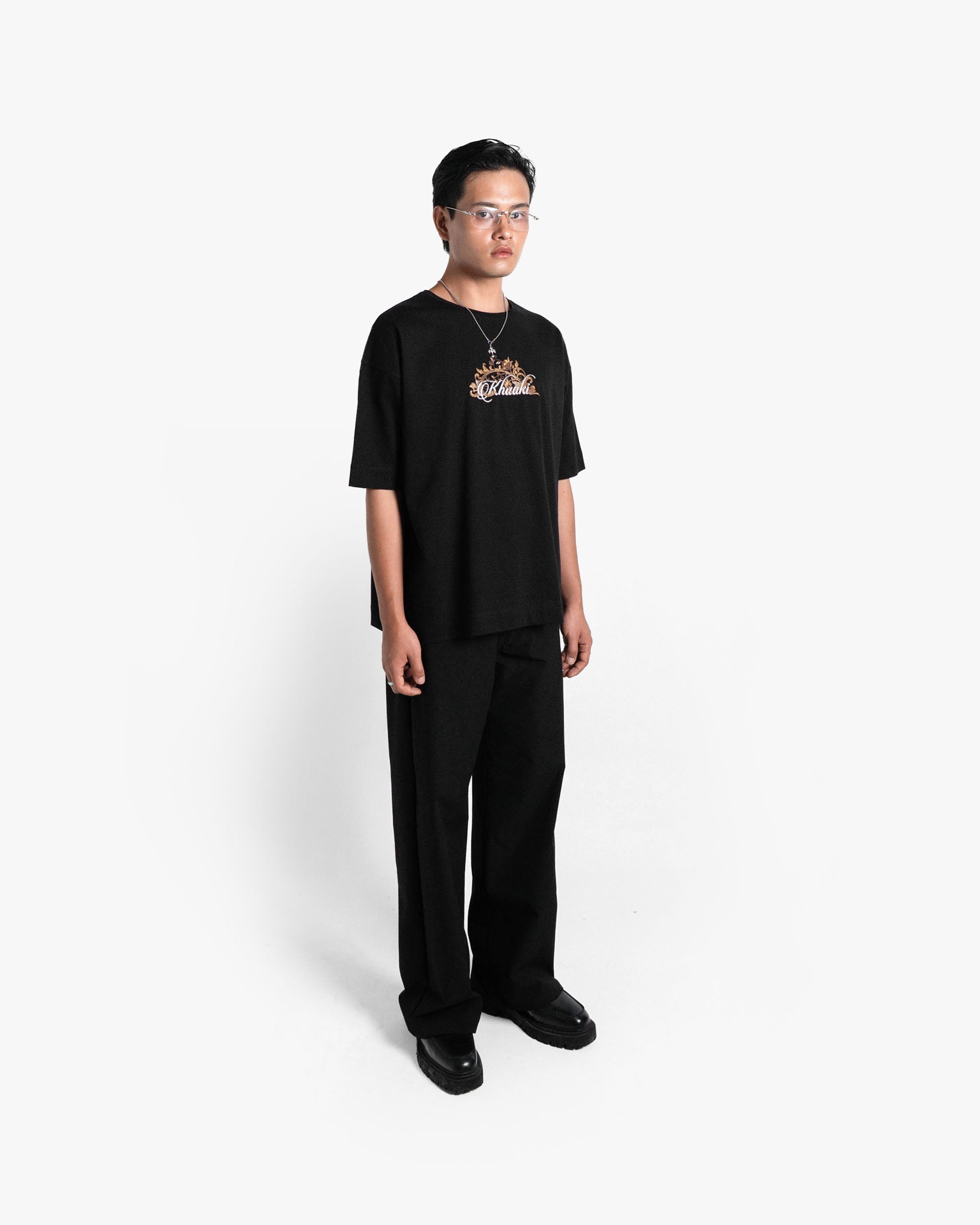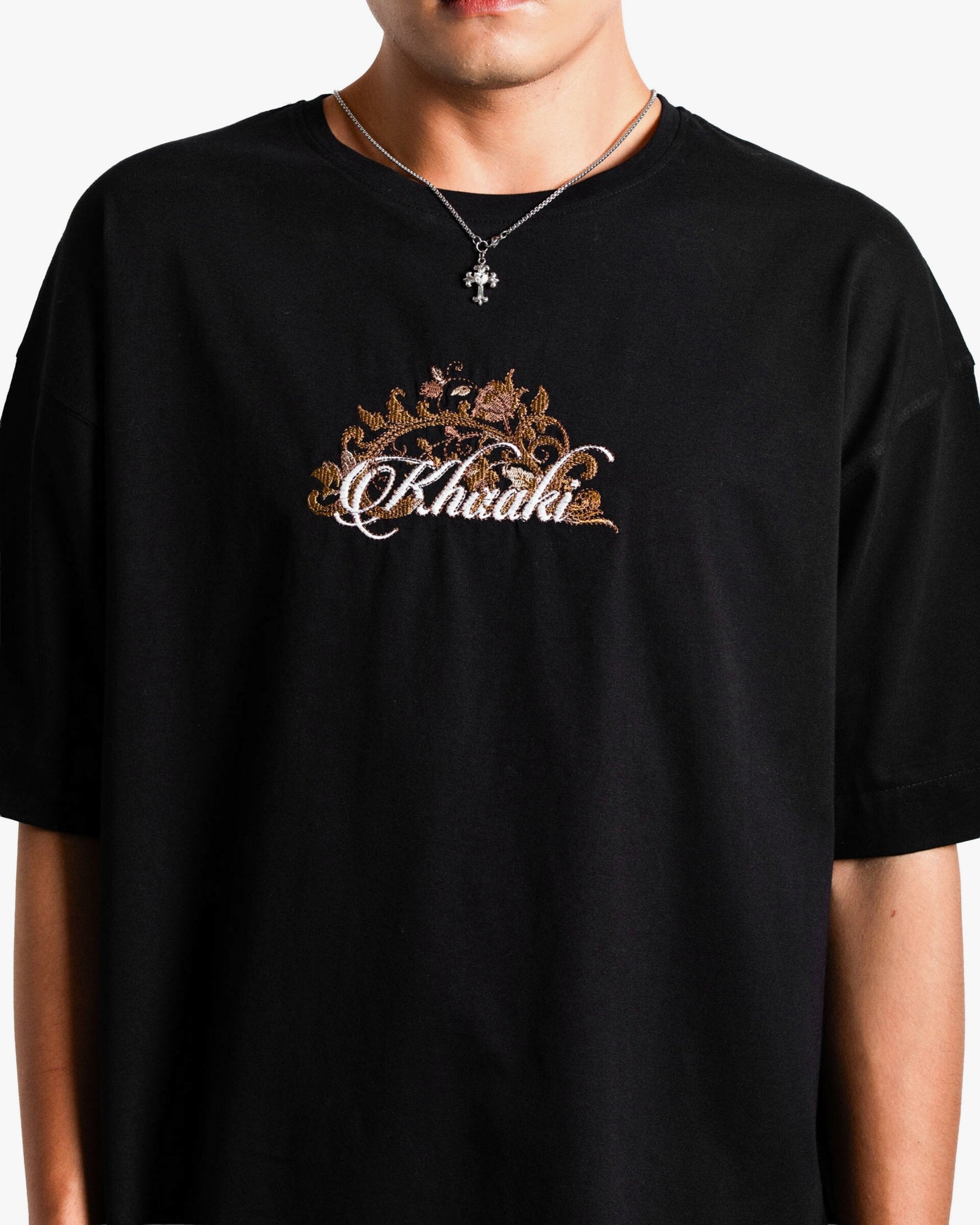 Crafted from heavyweight 100% mercerized cotton and finished with a luxurious double silicone wash, this piece showcases nearly 3 lakh embroidery stitches in earthy tones, weaving a regal scene of swans, roses, and vintage baroque flourishes. The detailed embroidery on the chest adds a refined contrast, perfectly tying in with the majestic full-back artwork.