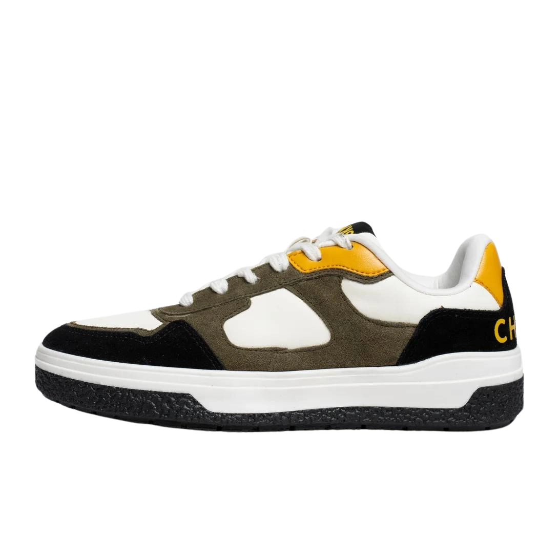 THE TAXI CHNKS — bring bold yellow and green vibes a masterpiece where exclusivity seamlessly intertwines with the pulse of Indian street culture! Inspired by the iconic taxis that weave through the energetic streets, these kicks feature a captivating colour palette and are meticulously crafted from a blend of white PU, olive green and black suede leather, with subtle hints of yellow PU. Designed for both style and durability, the dual-toned TPR outsole not only complements the colour scheme but also provides reliable traction and support while the soft microfiber lining and PU soft-moulded insoles cradle your feet with each step. Secure your fit with our classic flat cotton laces. The Taxi CHNKS are your ticket to stride in exclusive urban style, where each step becomes a statement and every detail echoes with the spirit of Indian street culture. Alternative lacing in black colour available.