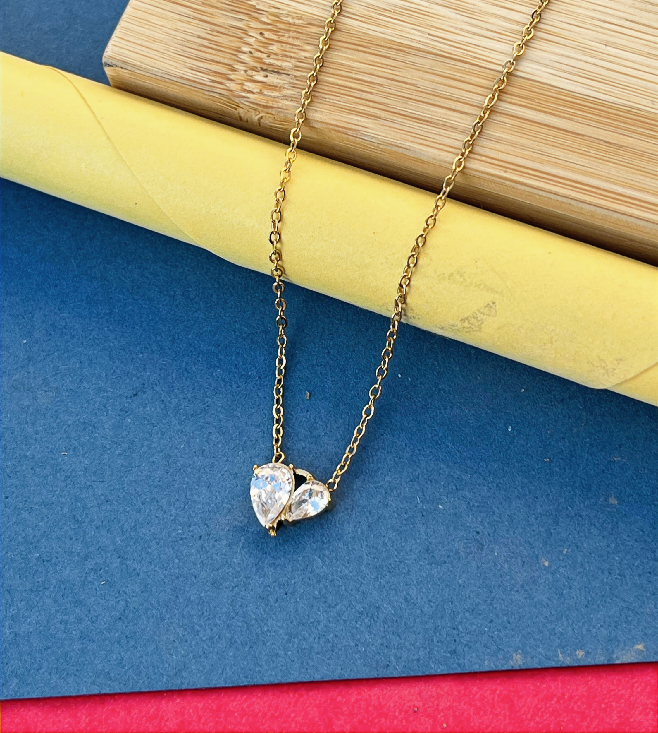 Embrace the timeless romance of the "Toi et Moi" design with this exquisite necklace. Featuring two sparkling, heart-shaped gemstones nestled together on a delicate chain, this piece symbolizes the beautiful union of two souls. A touch of sophisticated sentiment for everyday elegance.