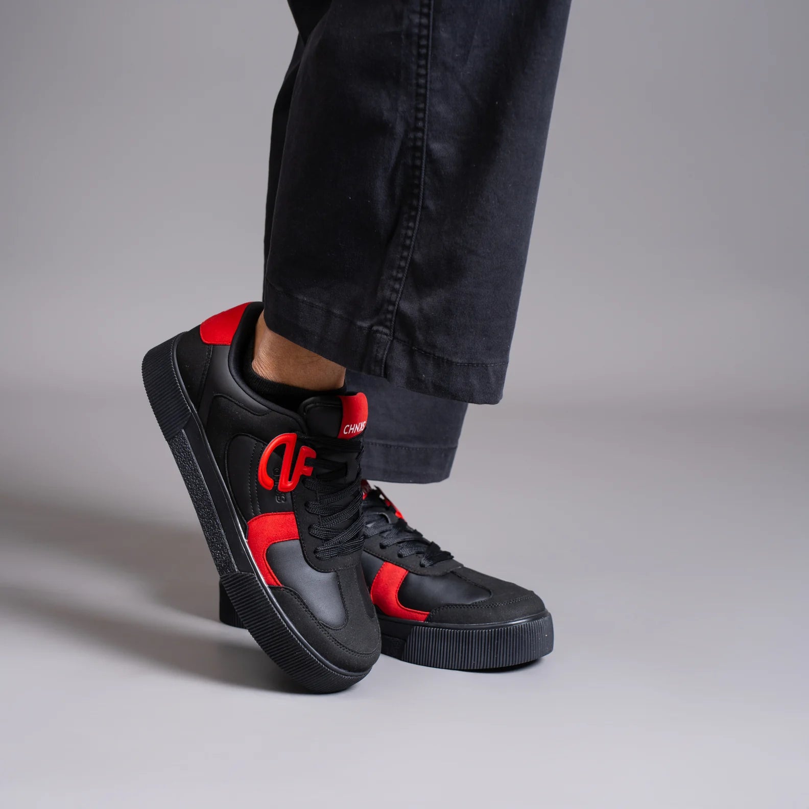 Description:VINYL CHNKS - bold black & red sneakers - is a sonic clash of past and present. Bold, rhythmic, and effortlessly cool. Inspired by the raw energy of vinyl records and underground music scenes, this pair fuses deep black and striking red to create a look that’s both timeless and electric. Whether you're making moves on the streets or setting the pace at the next big gig, it is your anthem in motion.