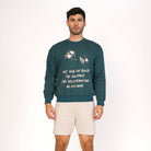 Crewneck sweatshirt in teal green cotton fleece with drippin paint and text.