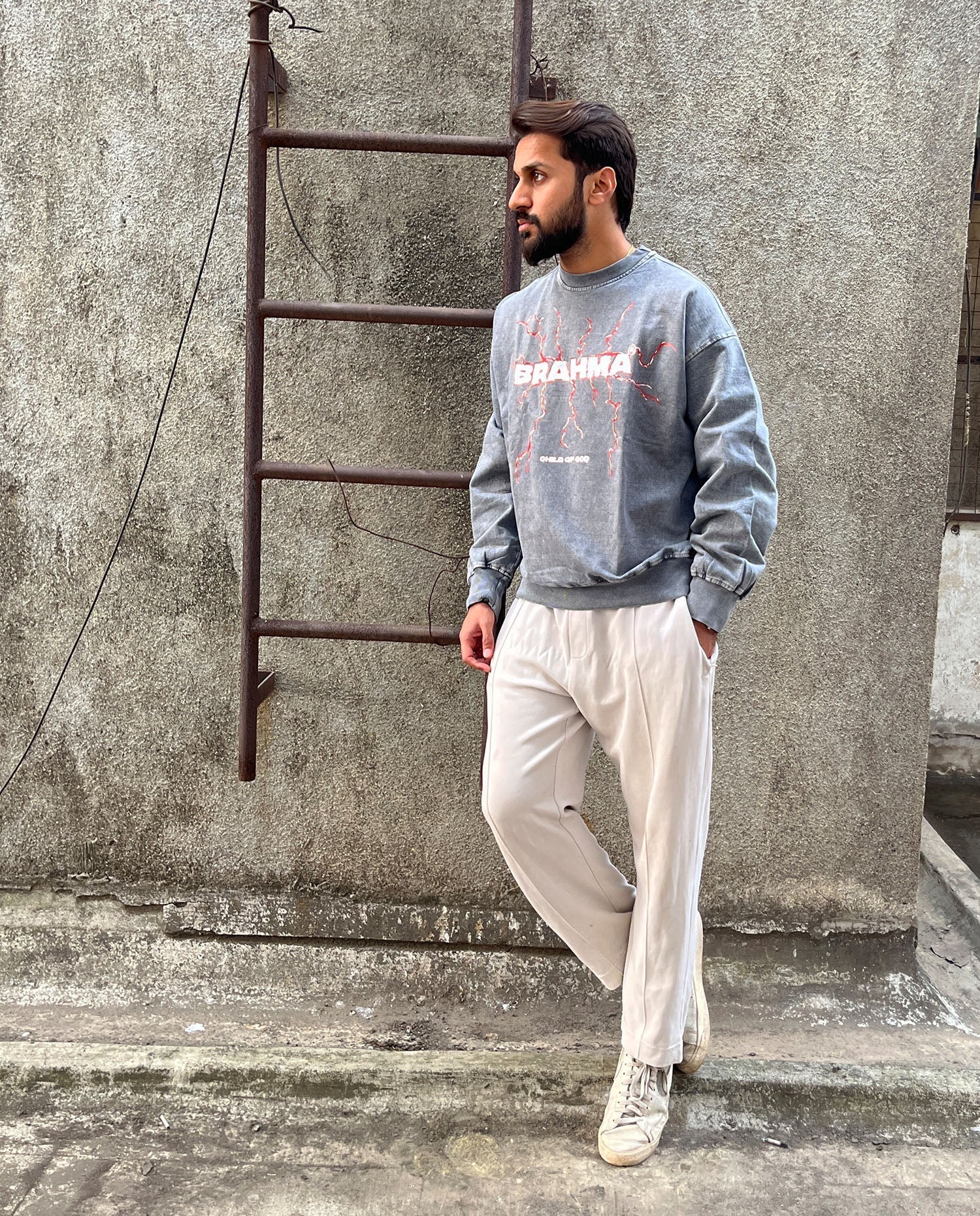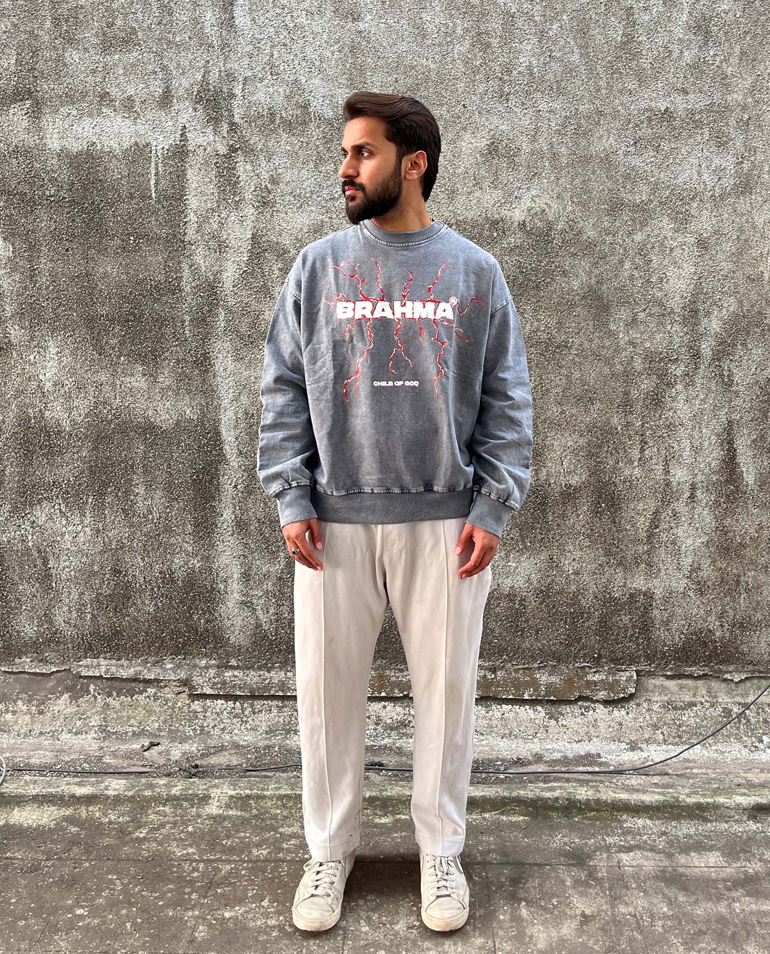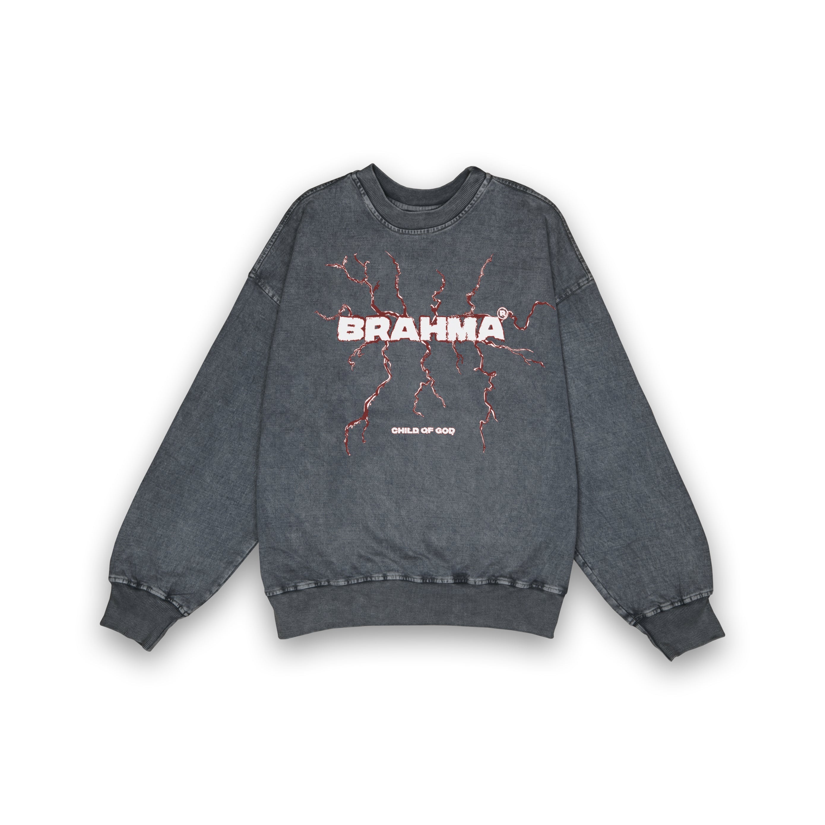 Introducing the Brahma Thunder Sweatshirt – crafted with 100% premium cotton at 300 GSM, this grey washed masterpiece radiates raw energy. The thunder design, paired with bold "BRAHMA" lettering, symbolizes power and resilience. The grey washed effect treatment gives it a vintage, lived-in aesthetic, making it a standout in any wardrobe.