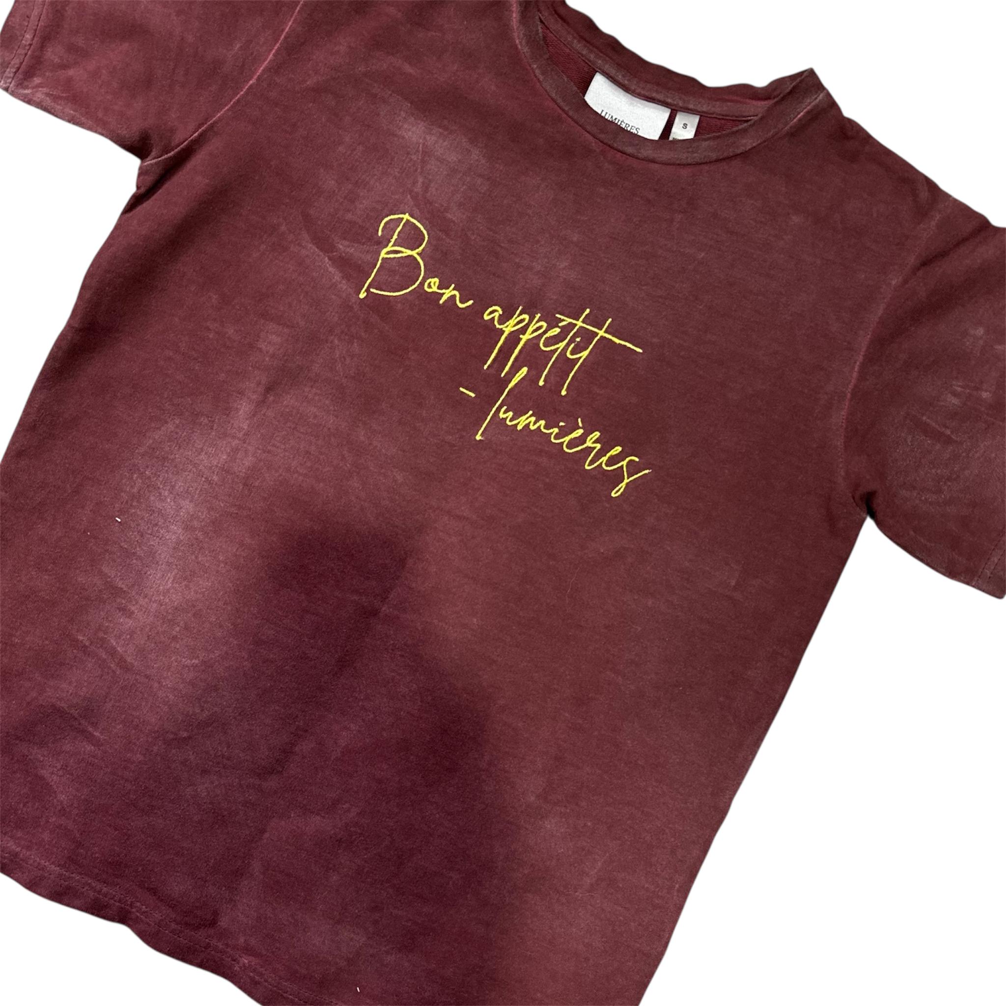 Limited Edition, Unisex Tee treated with a reactive overdyed deep washed brown producing subtle variations in tone giving the garment a rich vintage soul. Natural fade-outs and chalky white highlights emerge around the neckline, sleeves and hems. These muted undertones give each piece a unique, worn-in character.