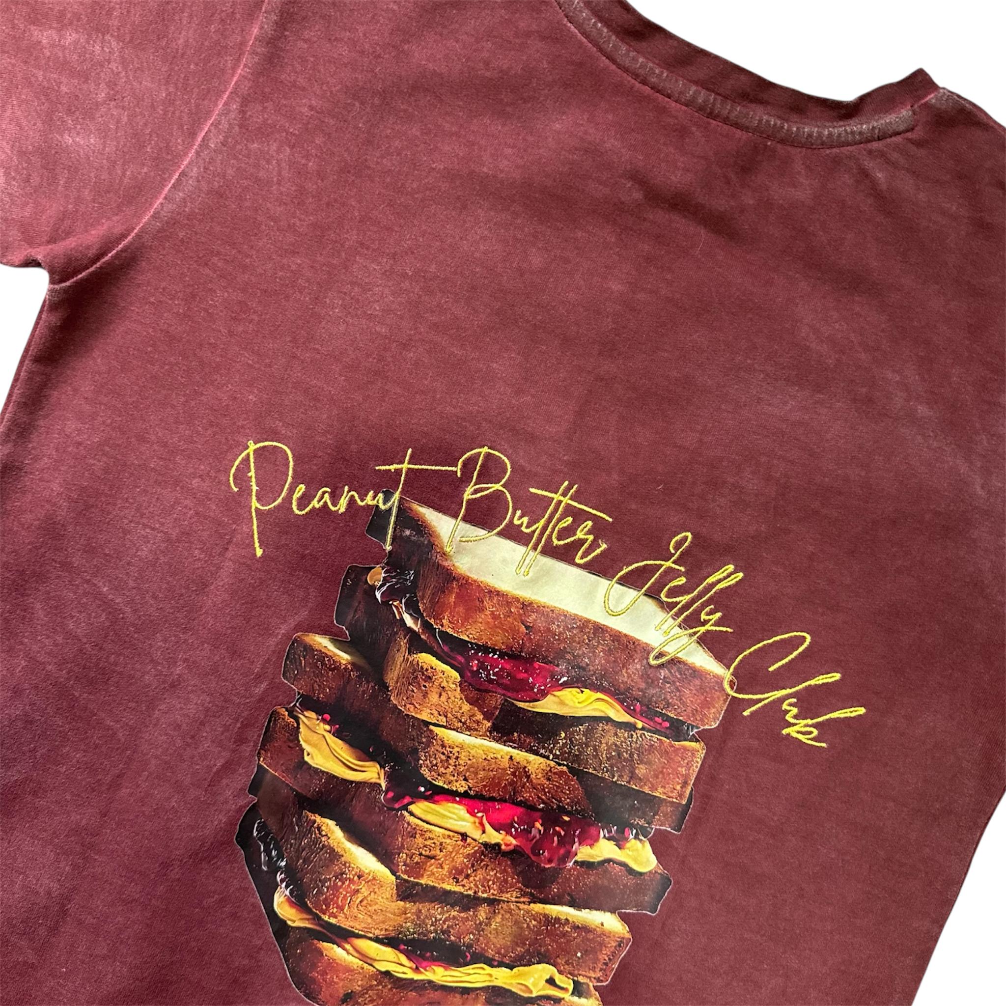 Front features premium spun yellow embroidery "bon appétit, lumières", Back features a vivid stacked PBJ toast and contrast embroidered text detail "Peanut Butter Jelly Club". Crewneck and dropped shoulders for a relaxed fit and versatile structure.