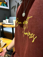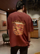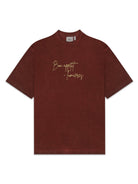 Limited Edition, Unisex Tee treated with a reactive overdyed deep washed brown producing subtle variations in tone giving the garment a rich vintage soul. Natural fade-outs and chalky white highlights emerge around the neckline, sleeves and hems. These muted undertones give each piece a unique, worn-in character.