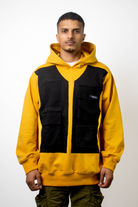 Toffle brings it's classic utility pocket detailing to this mustard hoodie. Functional and aesthetically pleasing, this contrast hoodie can be a great addition to your trips and help with some excess carry during winters.