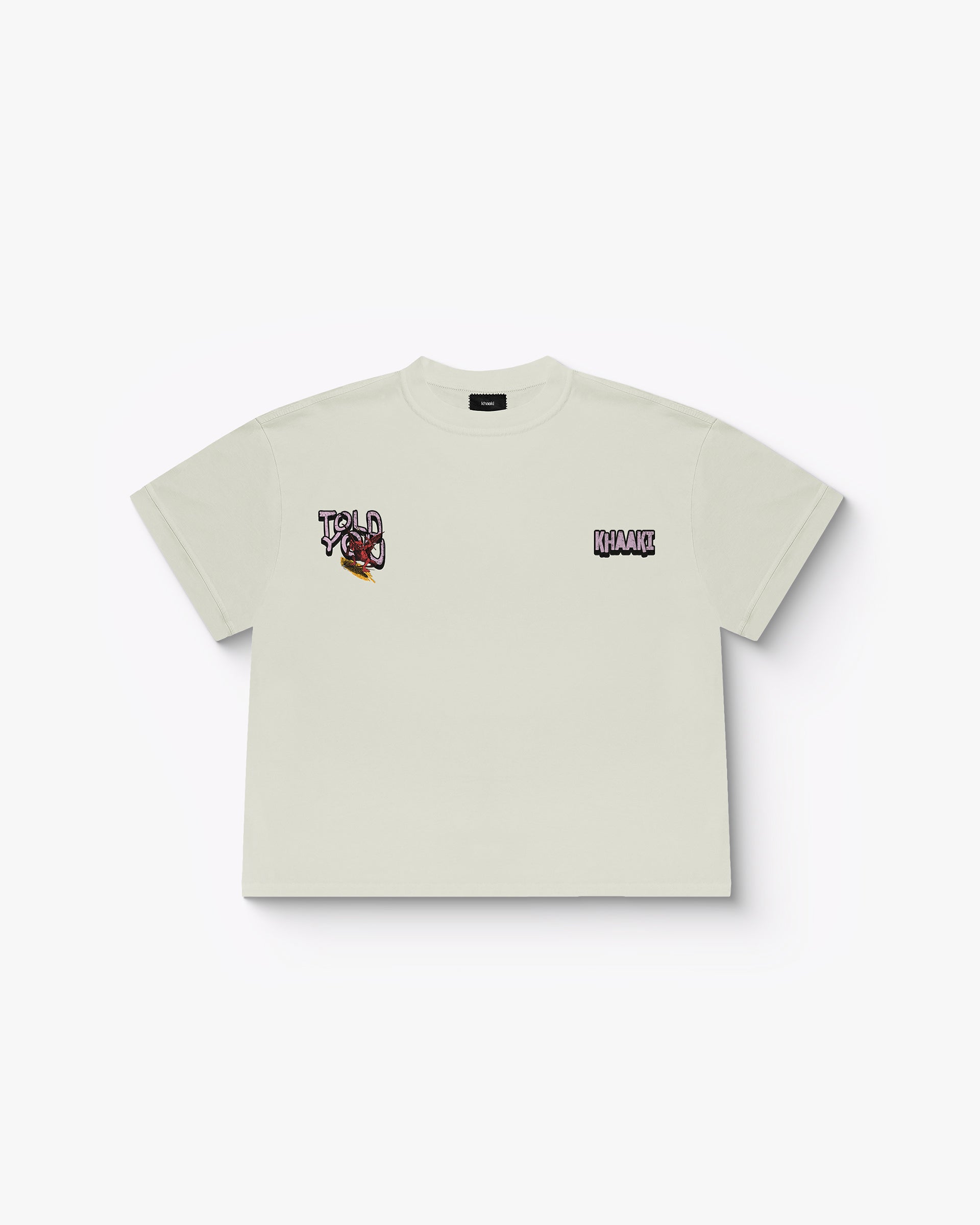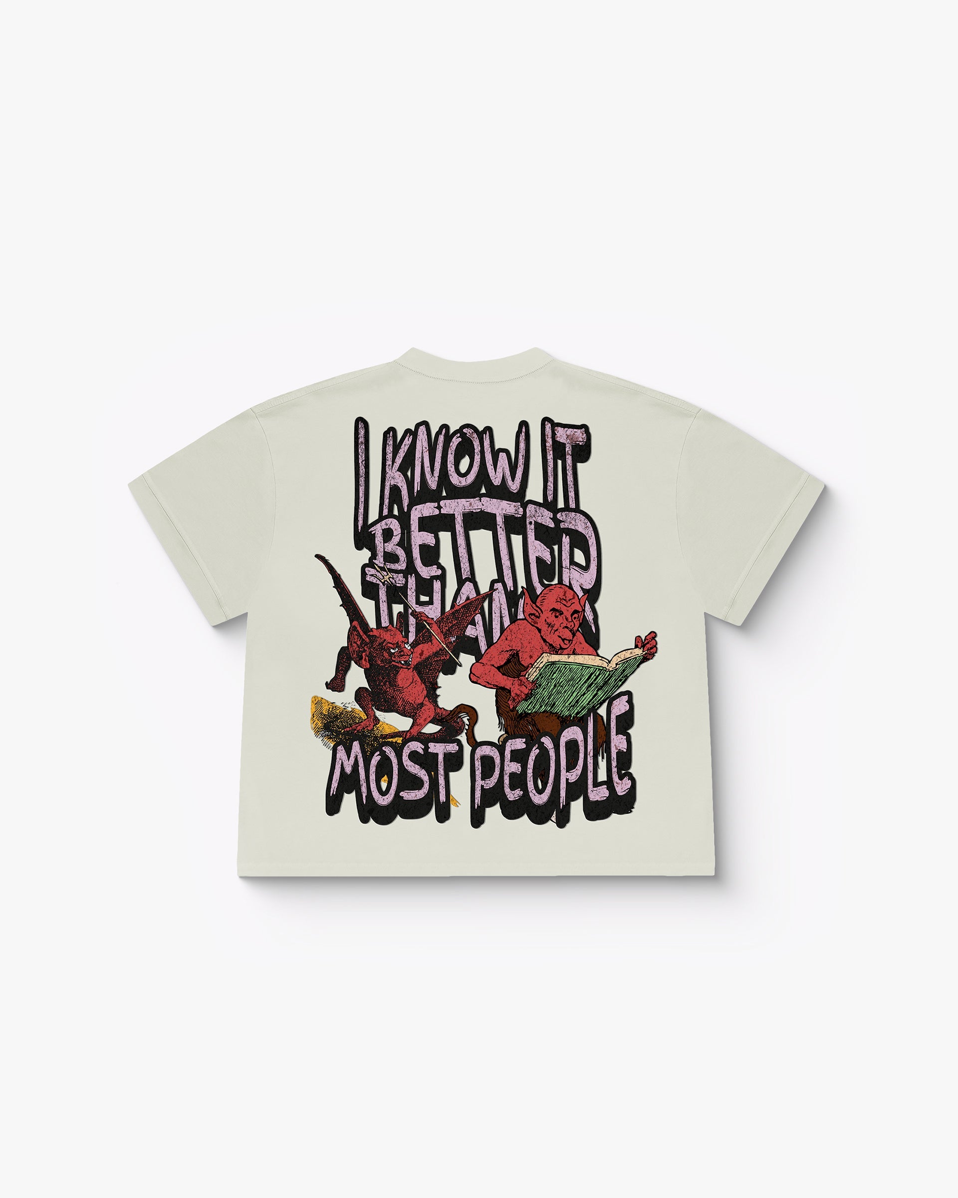 Stand out with the unapologetically bold “Told You!” oversized t-shirt, crafted from premium Cotton Spandex Terry Looper. Featuring a vibrant puff screen print of cheeky red devils and the statement “I KNOW IT BETTER THAN MOST PEOPLE,” this heavyweight 260 GSM tee blends attitude with comfort. Finished with double silicone washing for a buttery-soft feel and a killer fall.