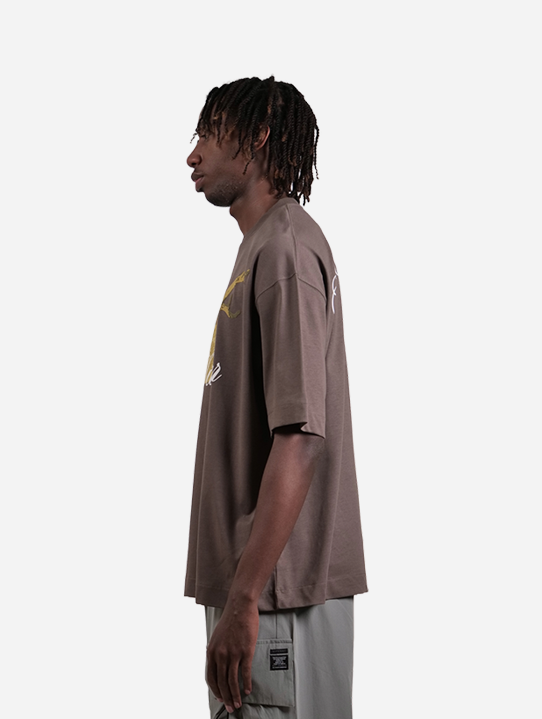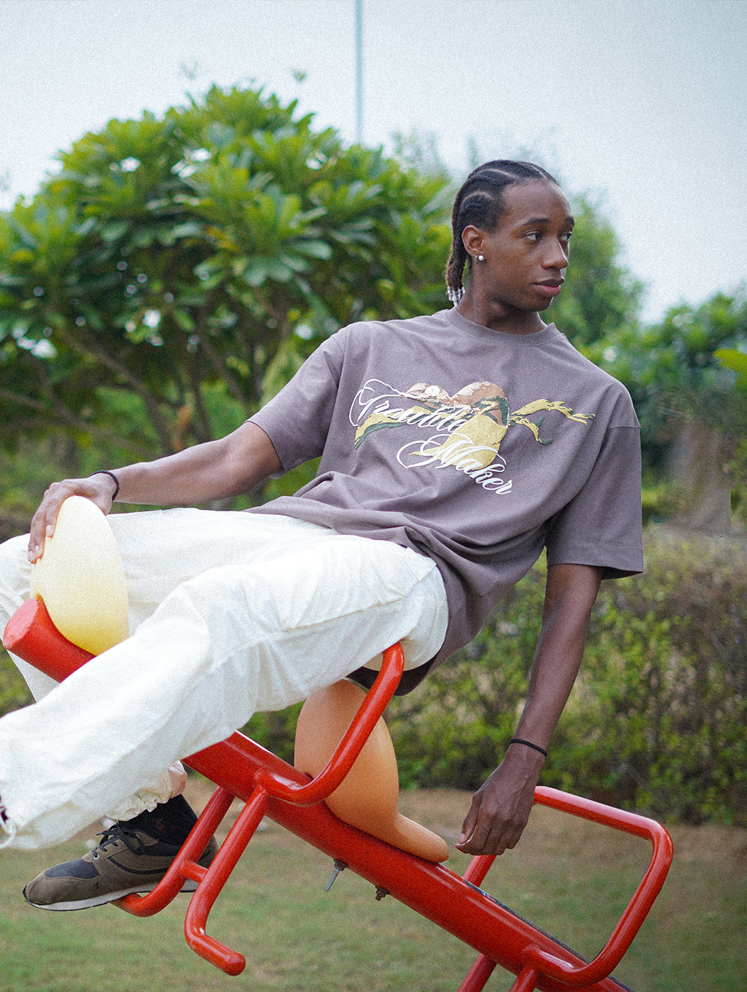 This oversized round-neck T-shirt features a bold front puff print that makes a striking statement. Crafted from 100% cotton with a fine single jersey finish and double silicone wash, it offers a soft touch and breathability. Its straight fit adapts effortlessly to your day, whether you're relaxing at home or out with friends. Stylish and versatile, it’s the ideal choice for making an impression while enjoying ultimate comfort—perfect for doubling the fun wherever you are!