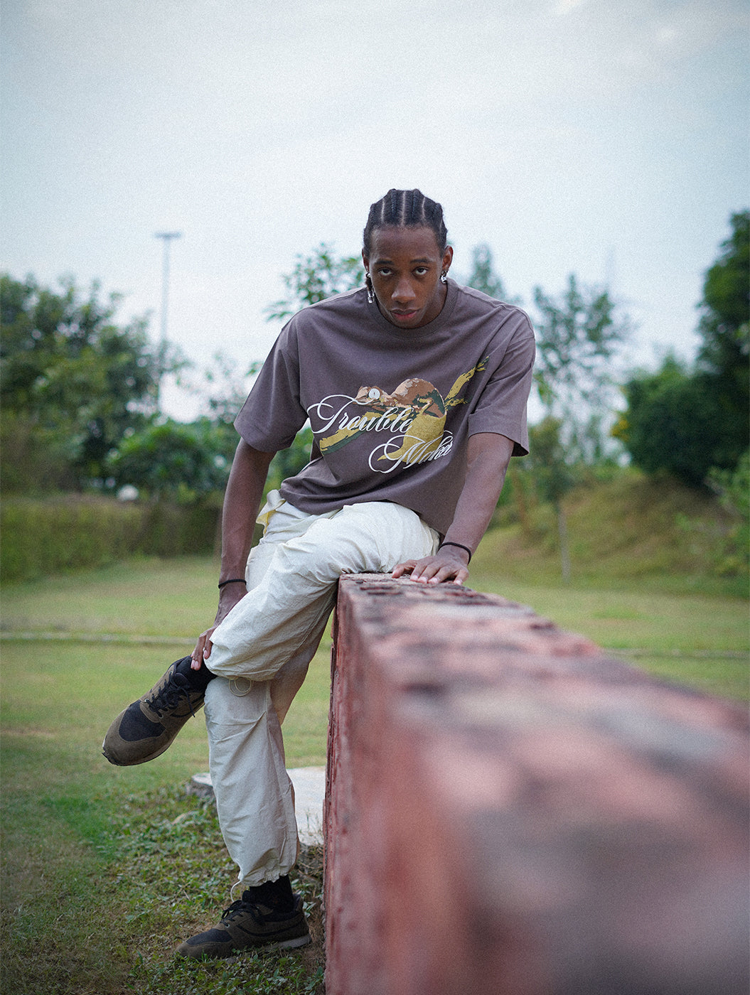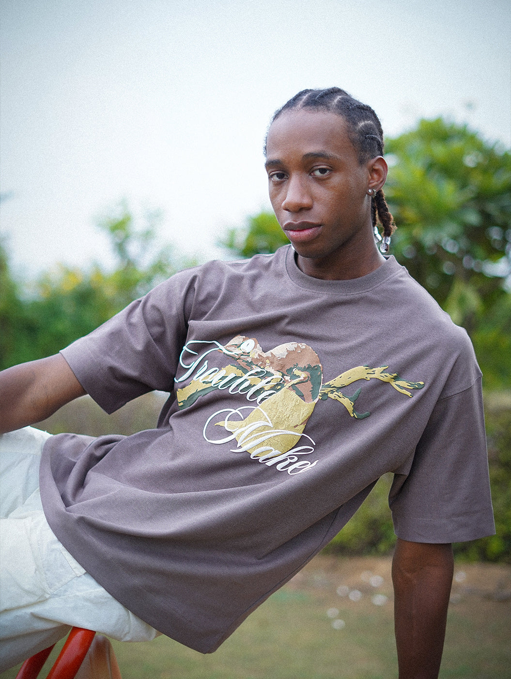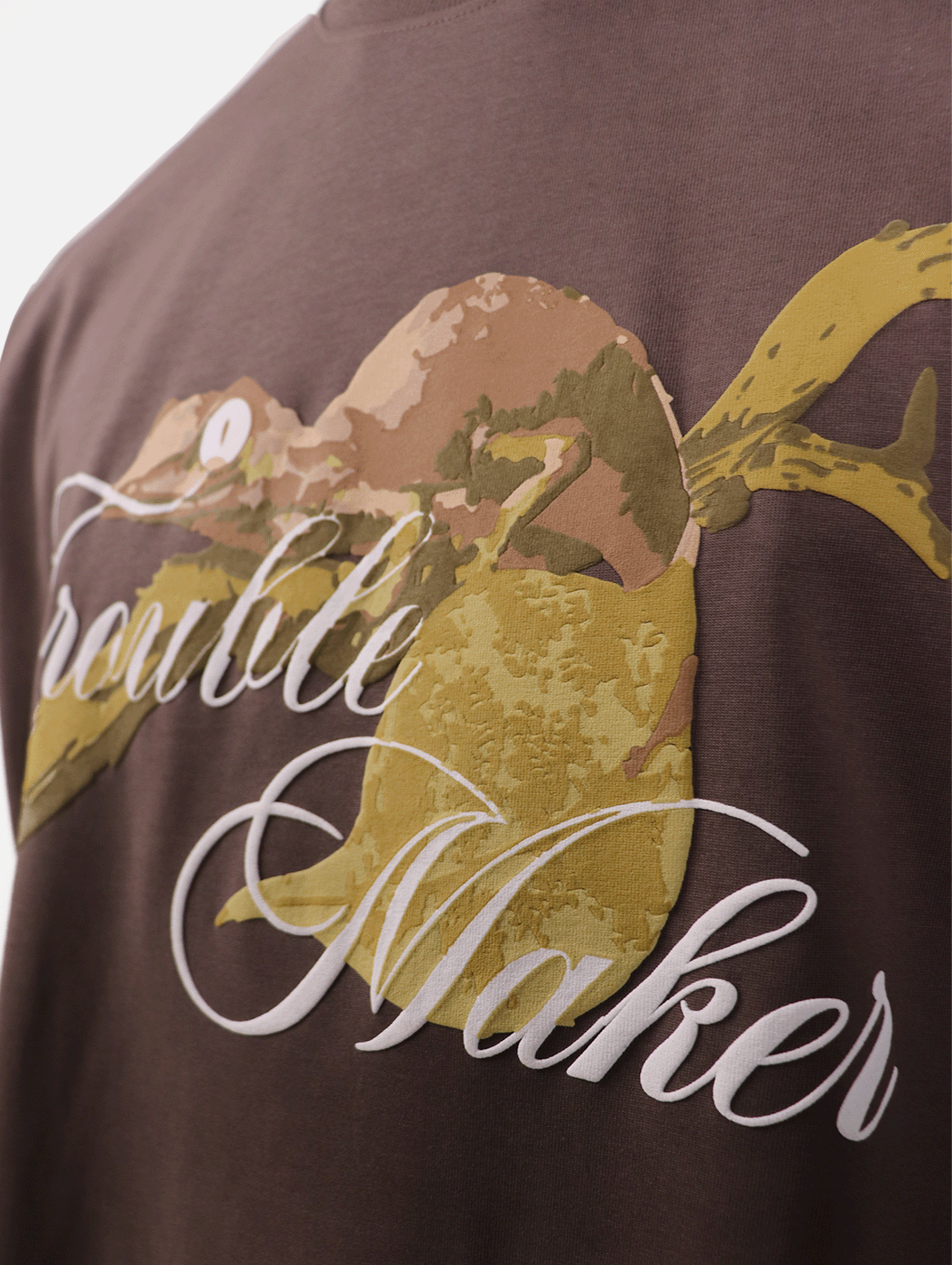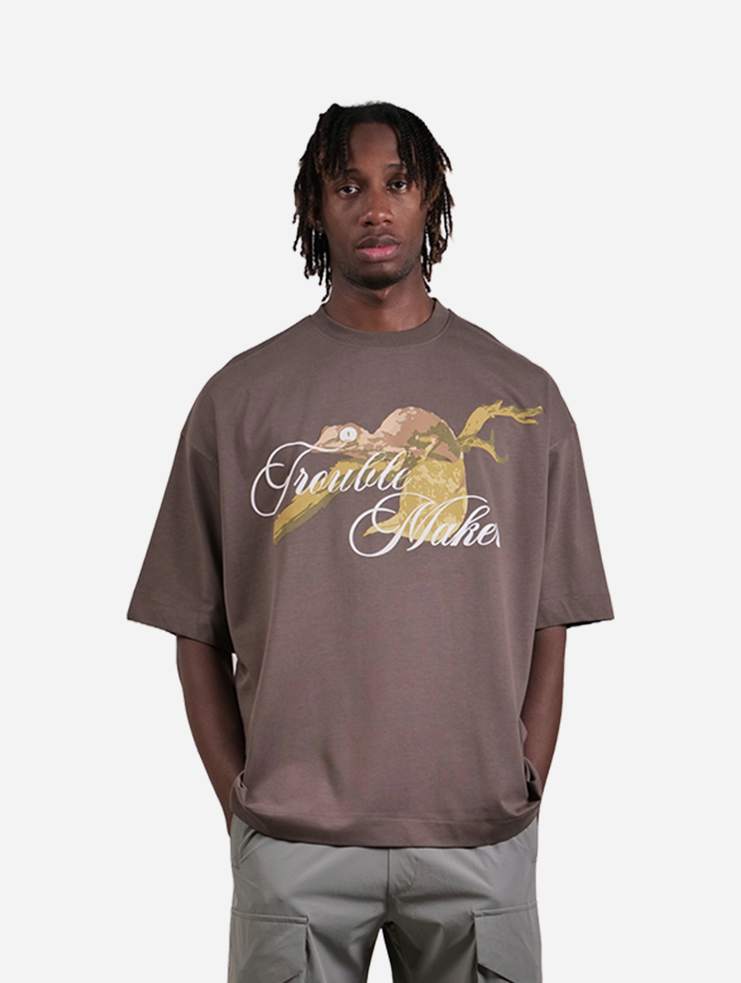 Trouble Maker - Dark Grey Graphic Drop Shoulder Oversized T-Shirt