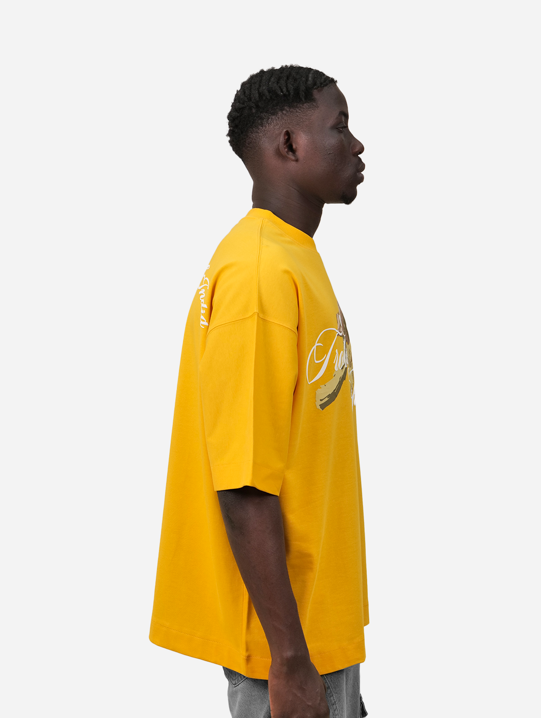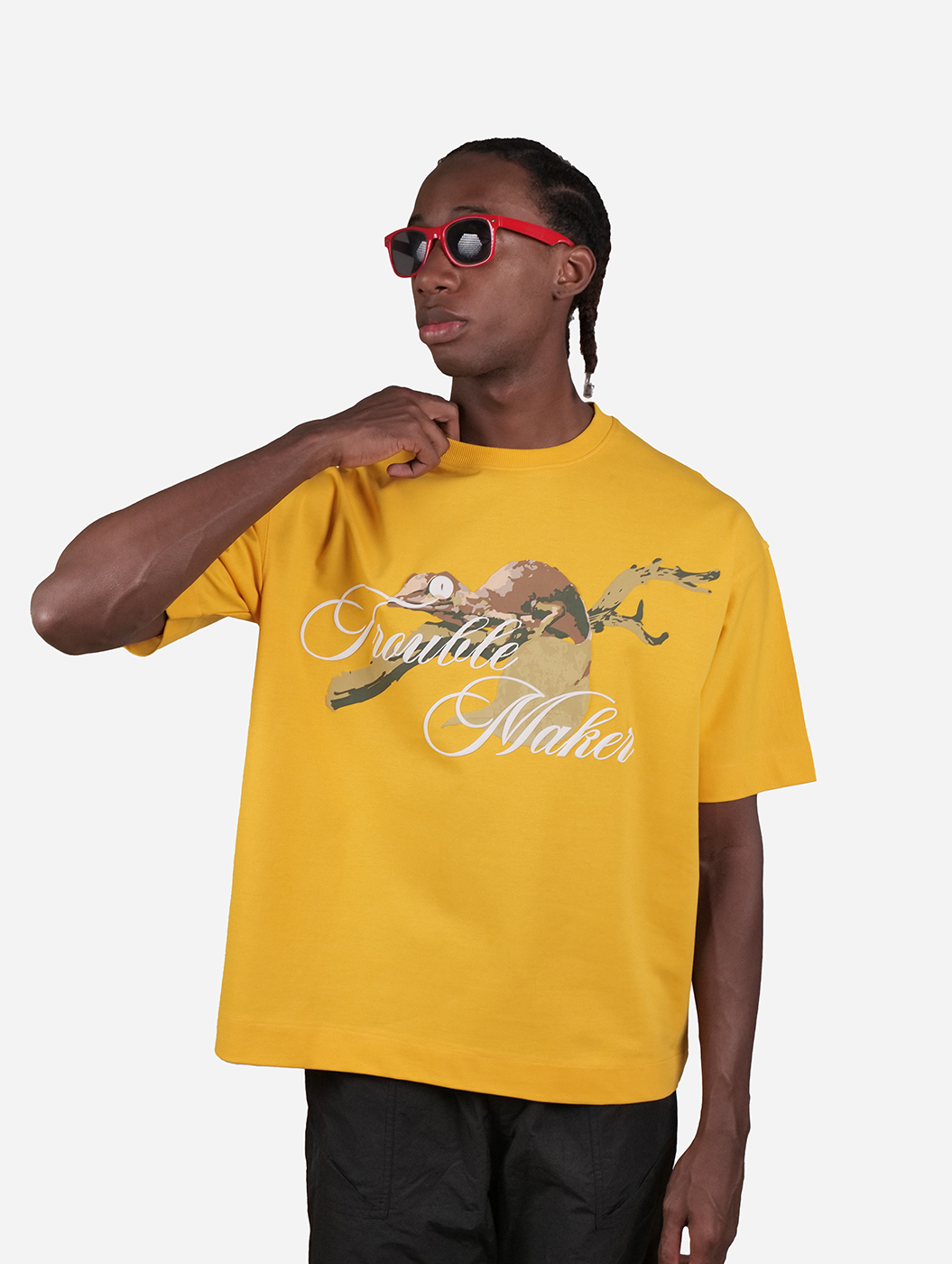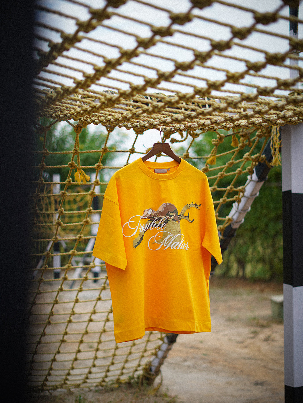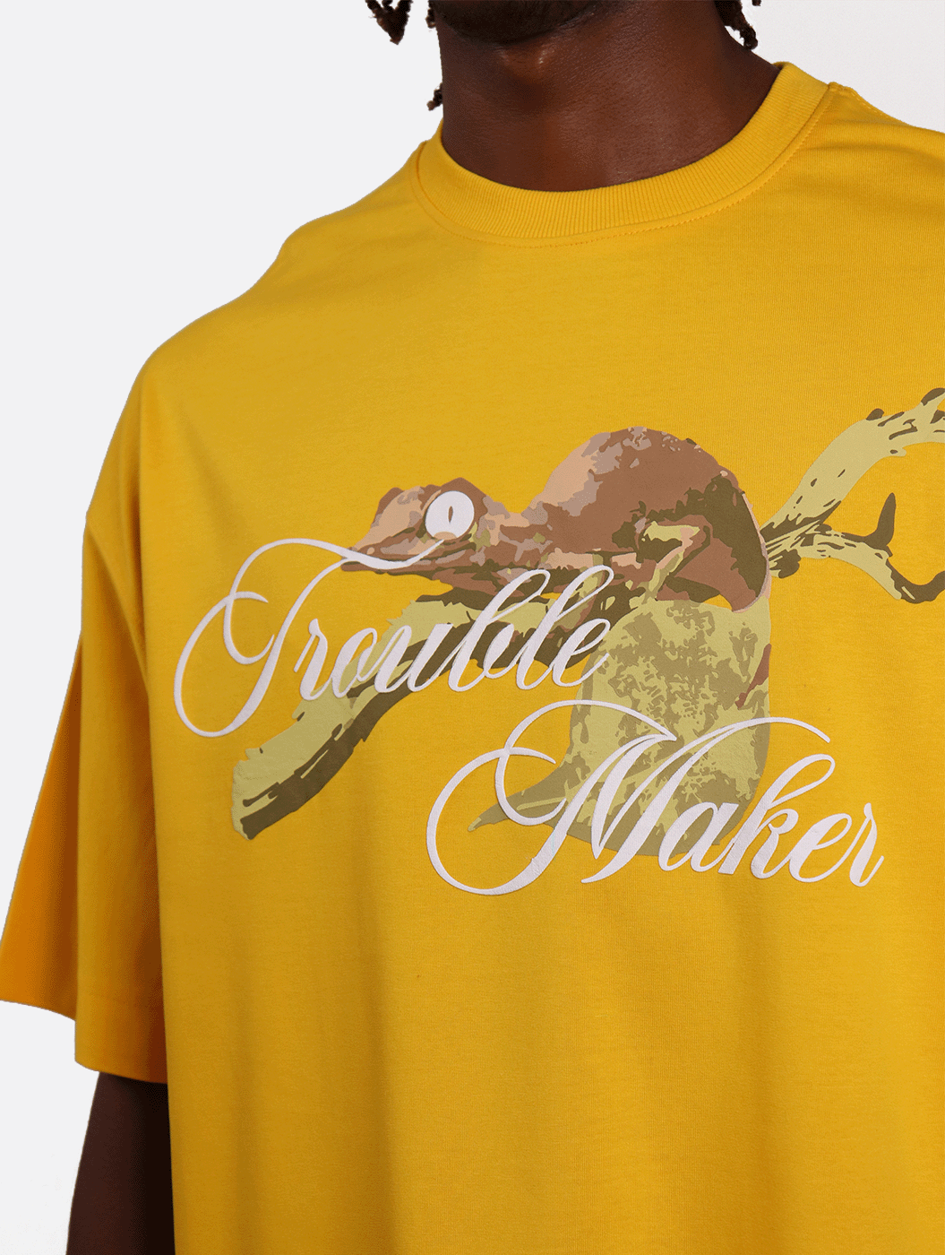 Trouble Maker - Yellow Graphic Drop Shoulder Oversized T-Shirt