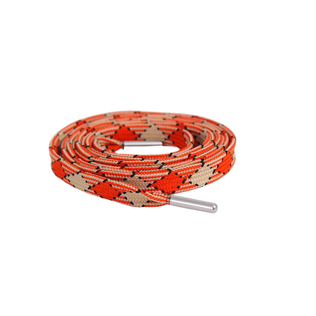 Turbo Diesel Flat Laces are built for sneakerheads who want their kicks to stand out without compromising durability. Featuring a bold orange, black, and beige plaid pattern, these flat shoelaces add instant character to classic and modern sneakers alike.