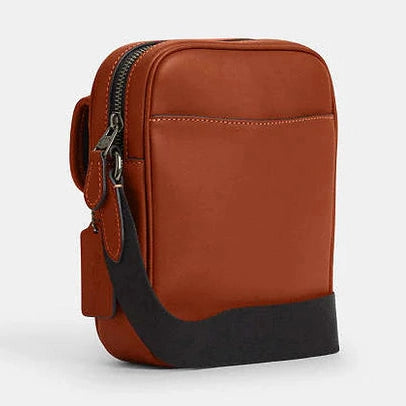 Crafted from smooth leather, the Coach Turnlock Crossbody Bag blends refined style with practical design. Its gunmetal hardware complements the rich tan leather, adding a contemporary touch. Compact yet spacious enough for essentials, this bag features a secure turnlock closure and an adjustable strap for comfortable wear. Ideal for those seeking a versatile accessory that combines durability with timeless elegance.