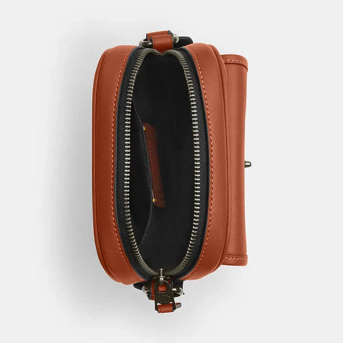Coach Turnlock Crossbody Bag Smooth Leather-Gunmetal-Tan