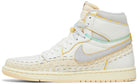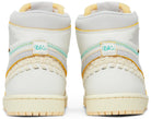 The iconic Union LA x Bephie's Beauty Supply x Air Jordan 1 Retro High OG SP "Summer of '96" is presented in a muted yellow, black and white colorway, featuring premium leather construction with classic tag logos on the panels. The perfect blend of classic style and modern comfort.