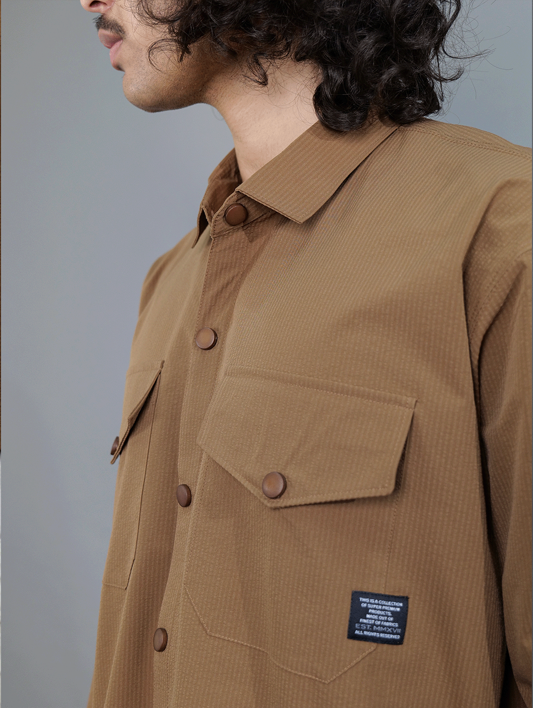 Utility - Coffee Double Pocket Oversized Men Shirt