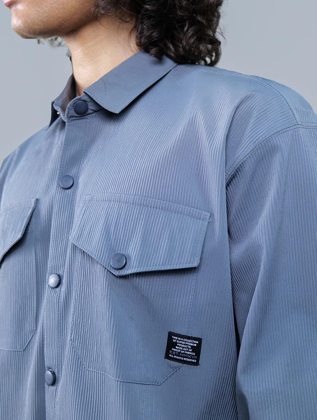 Utility - Gray Double Pocket Oversized Men Shirt