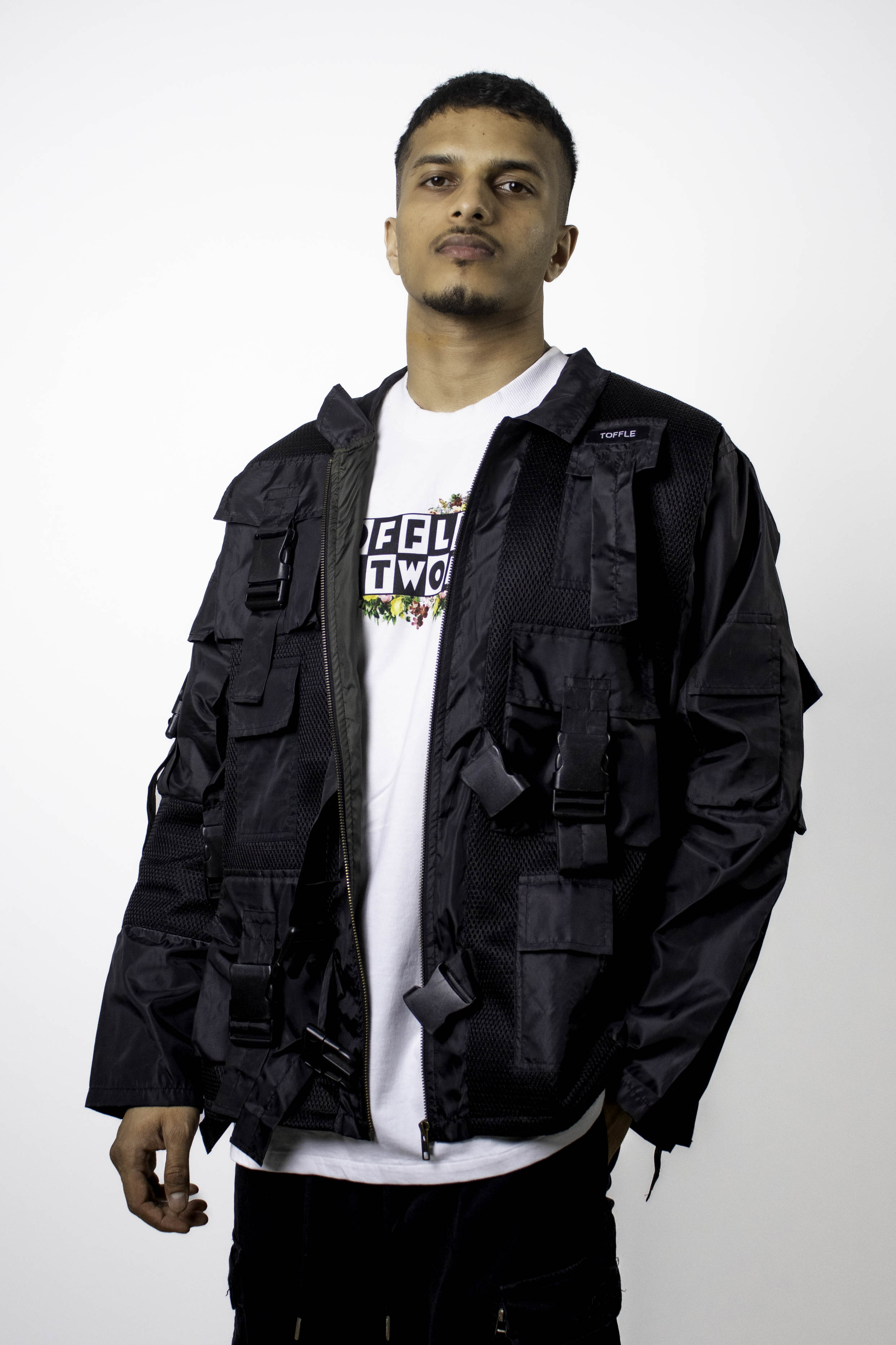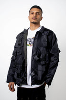This is a perfect blend between style and utility. The base nylon fabric is lightweight and an easy carry when layering with your favorite t-shirt. Buckle and pocket detailing across the product gives you a unique experience. Goes best with the Utility pants.