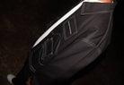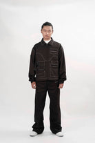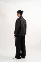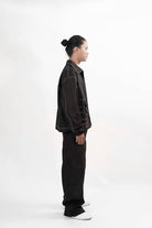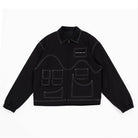 THE UTILITY JACKET FEATURES A WAVE PANEL WITH WHITE CONTRAST THREAD. EACH PIECE IS HANDCRAFTED WITH CARE AND ATTENTION TO DETAIL.