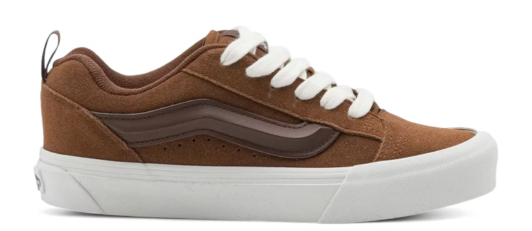 The Vans Knu Skool Suede Shoe in Brown features a premium suede upper that combines durability with a refined look. Designed for comfort and support, it includes a padded collar and cushioned insole to enhance wearability throughout the day. The classic Vans waffle rubber outsole provides reliable grip and long-lasting traction, making it suitable for both casual wear and active use. This shoe expertly balances timeless style with practical performance, ideal for those seeking a versatile and durable addition to their footwear collection.